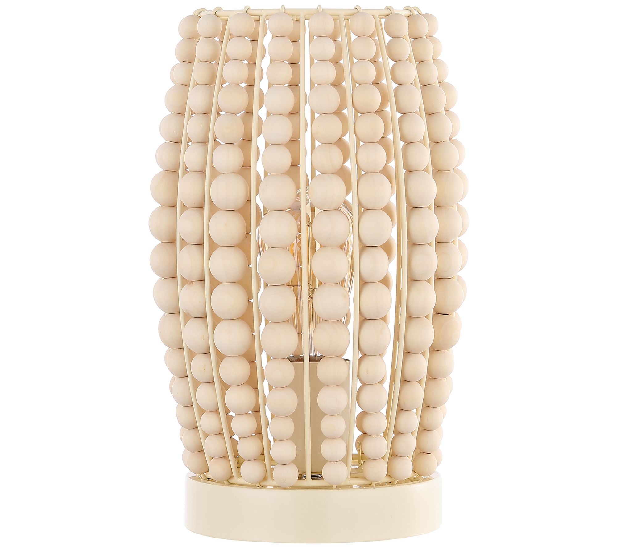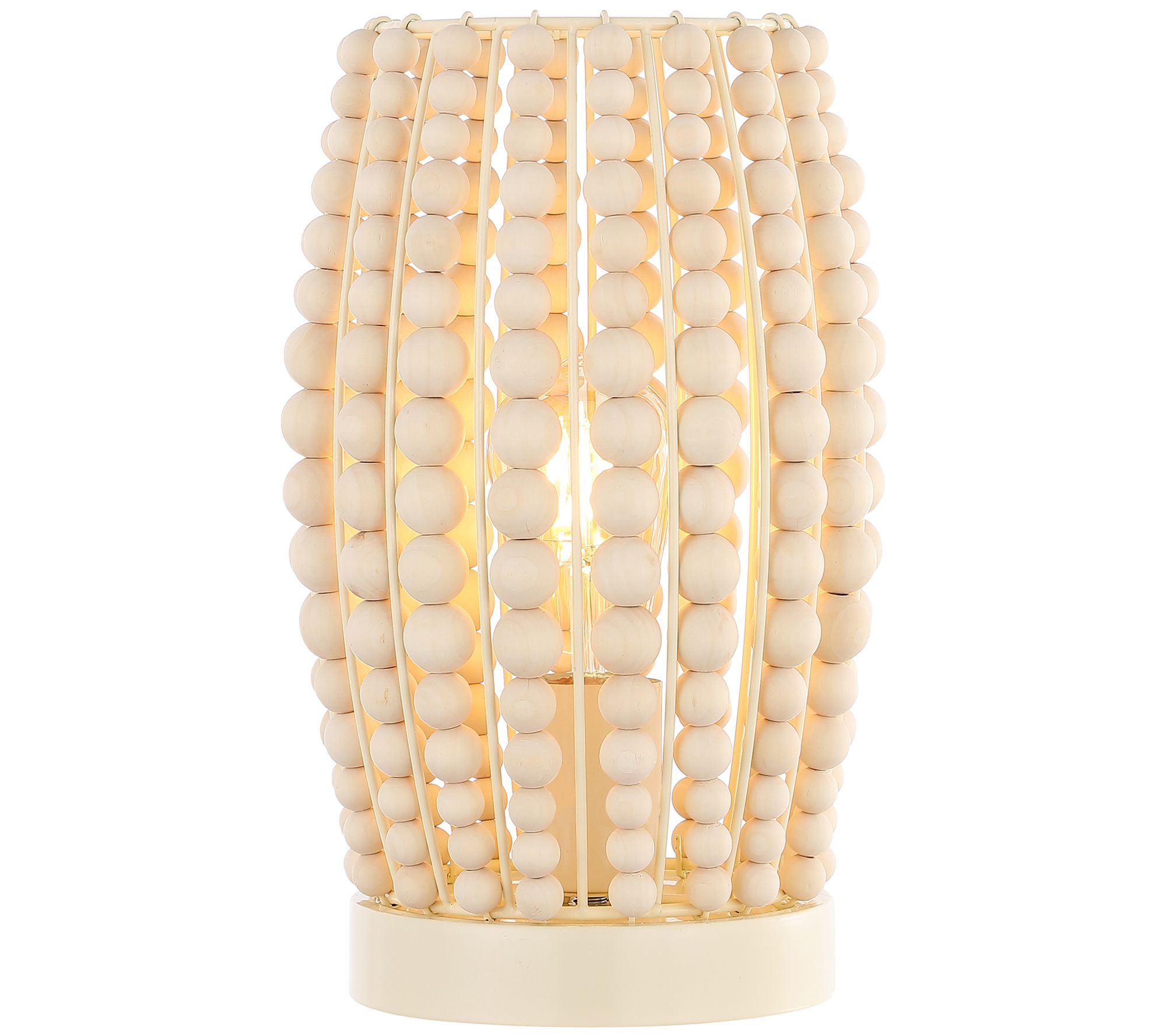 Accent your home with the sleek sophistication of this modern table lamp featuring a beaded wood base and fabric shade. From Safavieh.