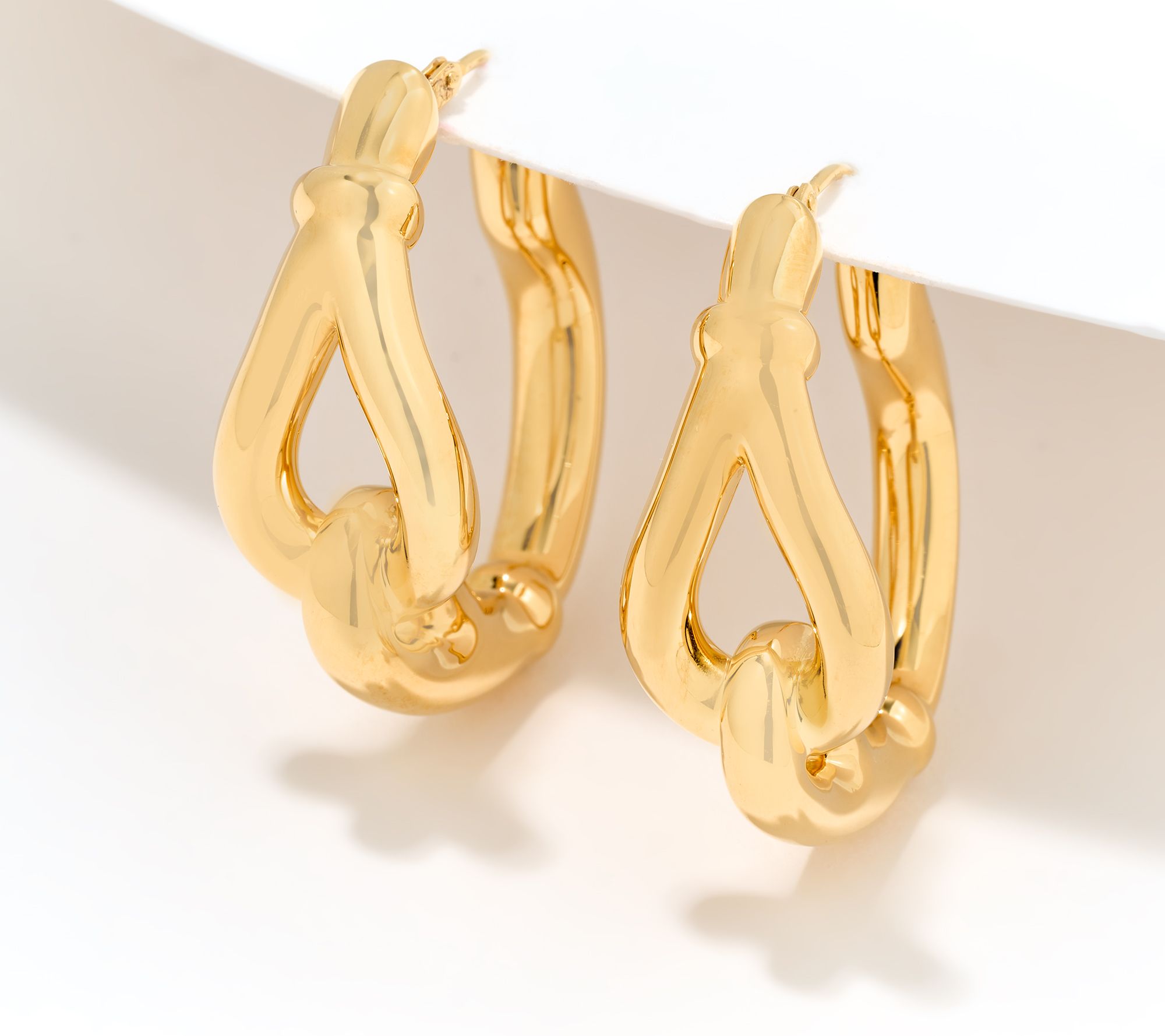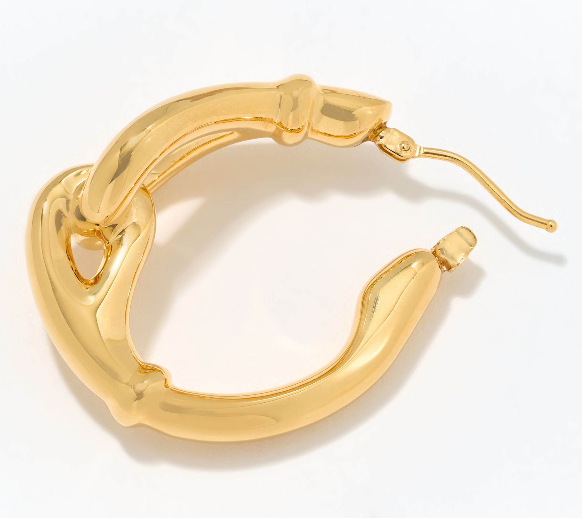 • Oval-shaped hoop design; equestrian loop; polished finish