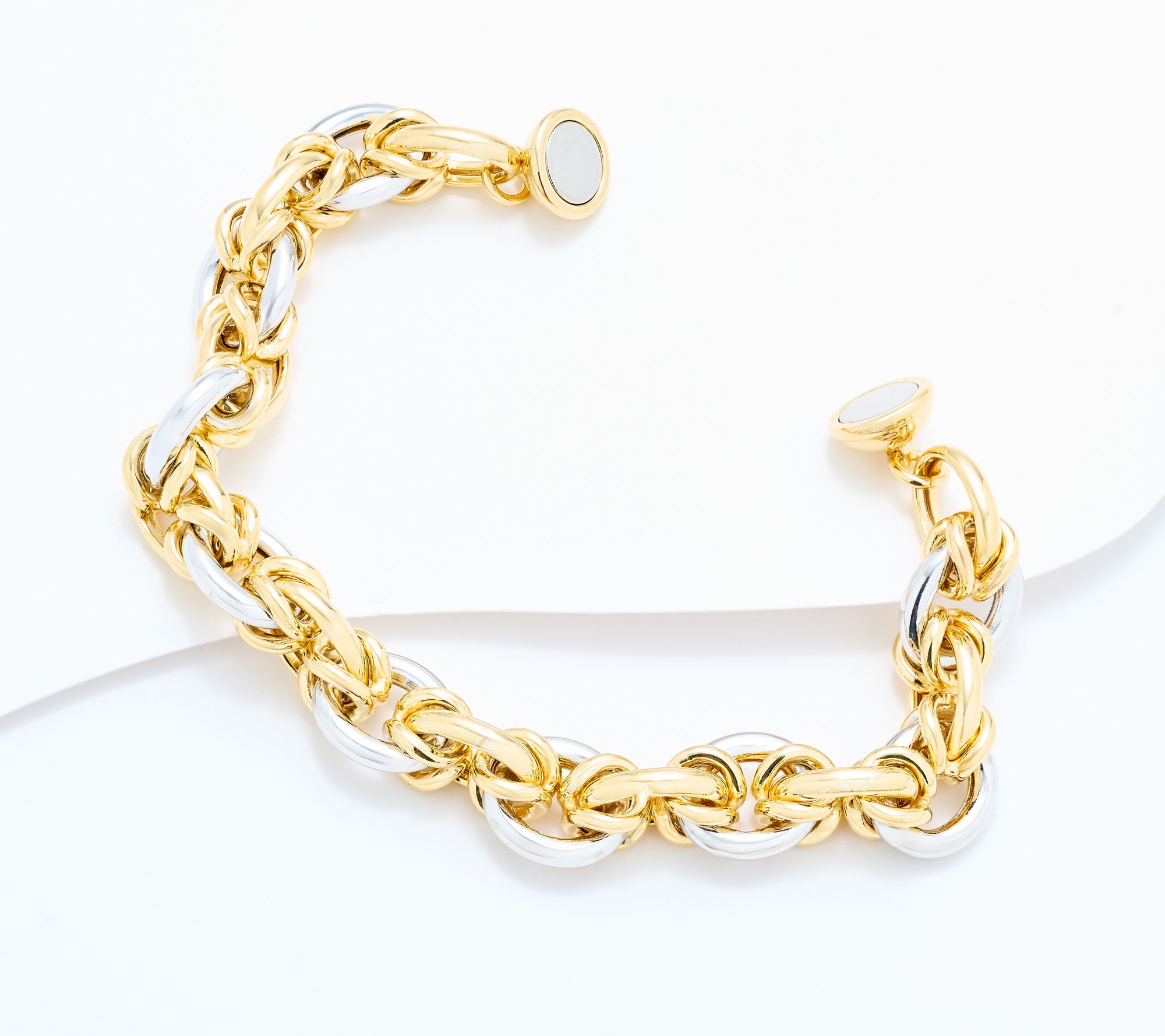 Sophisticated design meets everyday versatility with this bronze byzantine bracelet, highlighted by oval and intricate byzantine links. Its magnetic bead closure makes for easy wear, while the debut status look brings a touch of European artistry to your jewelry wardrobe -- ideal for any celebration or a pop of polished shine with your favorite outfit. From David Markstein.