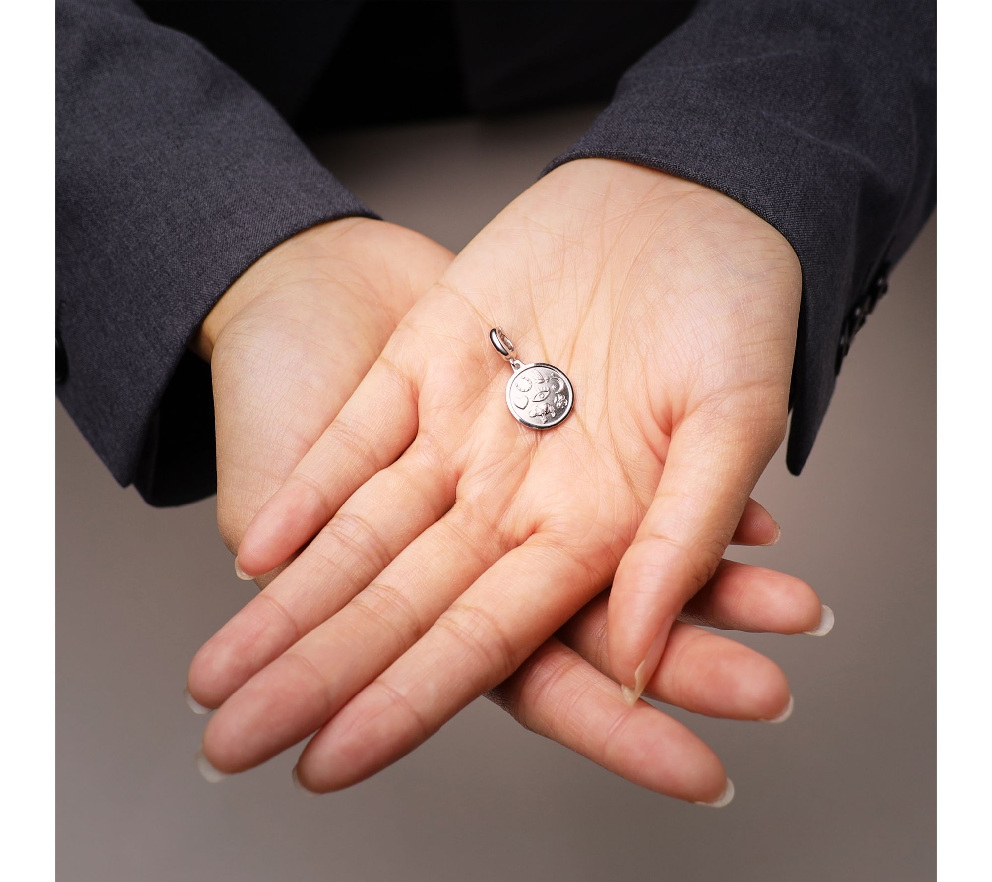 • Round pendant featuring choice of symbol; smooth, polished back