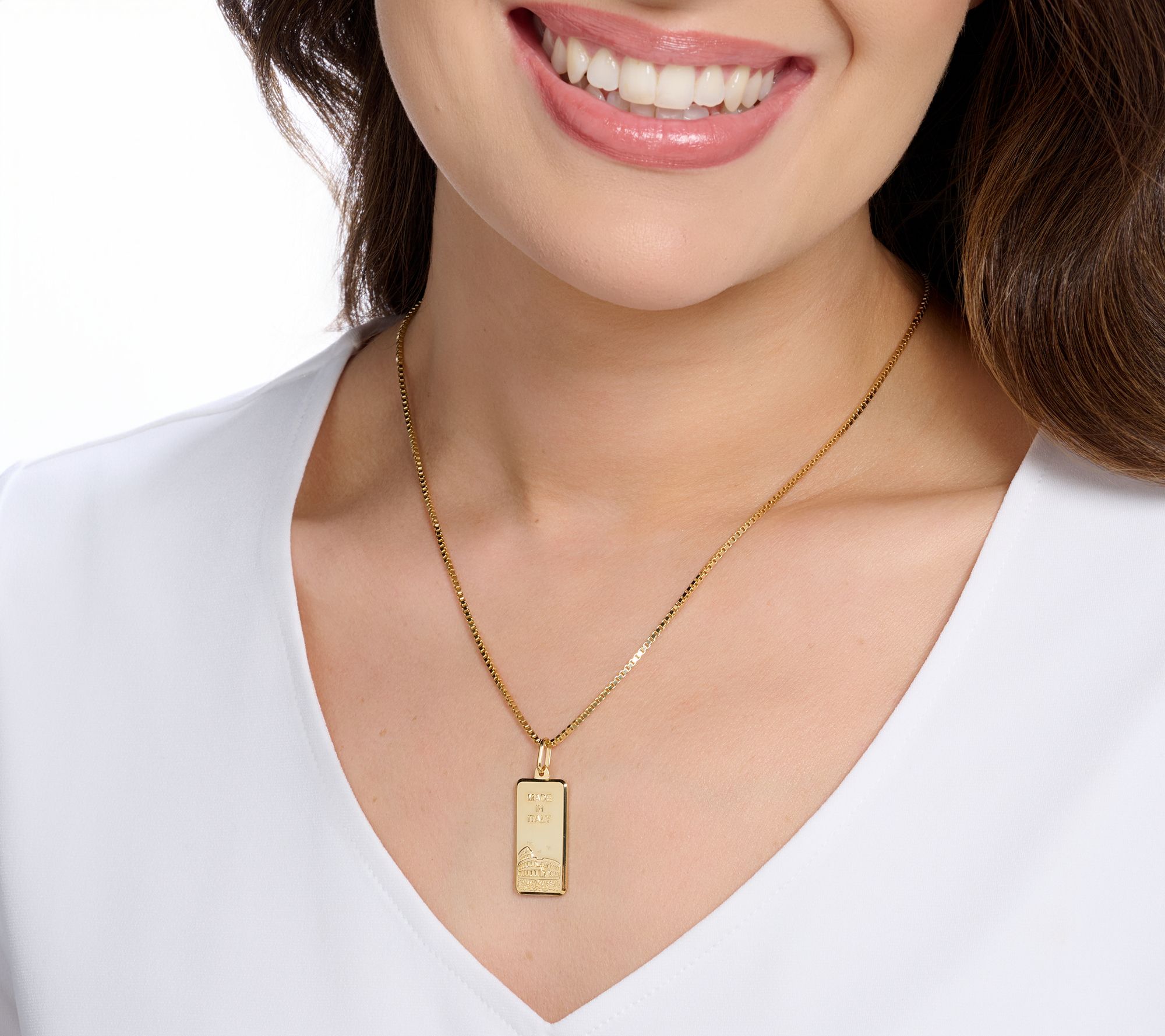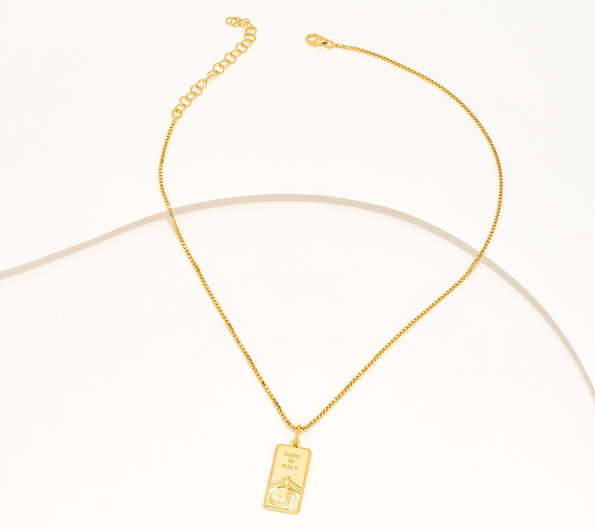A touch of Italian artistry brings global flair to your jewelry lineup with this engraved ingot pendant on a squared box chain. The adjustable chain lets you style it solo or layered, easily transitioning from workday meetings to weekend escapes. From David Markstein.