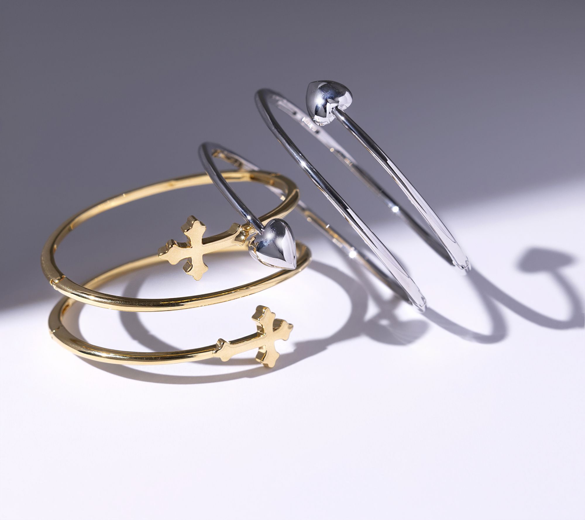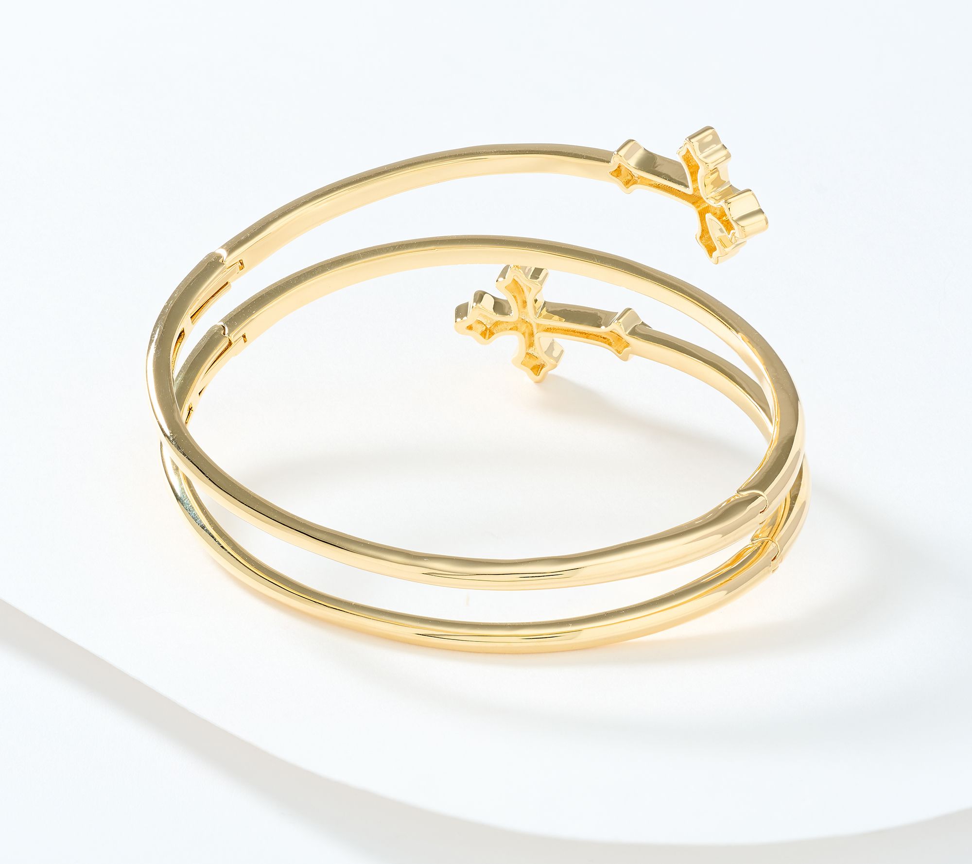 Multi-hinged wrapped bangle with cross design; polished finish