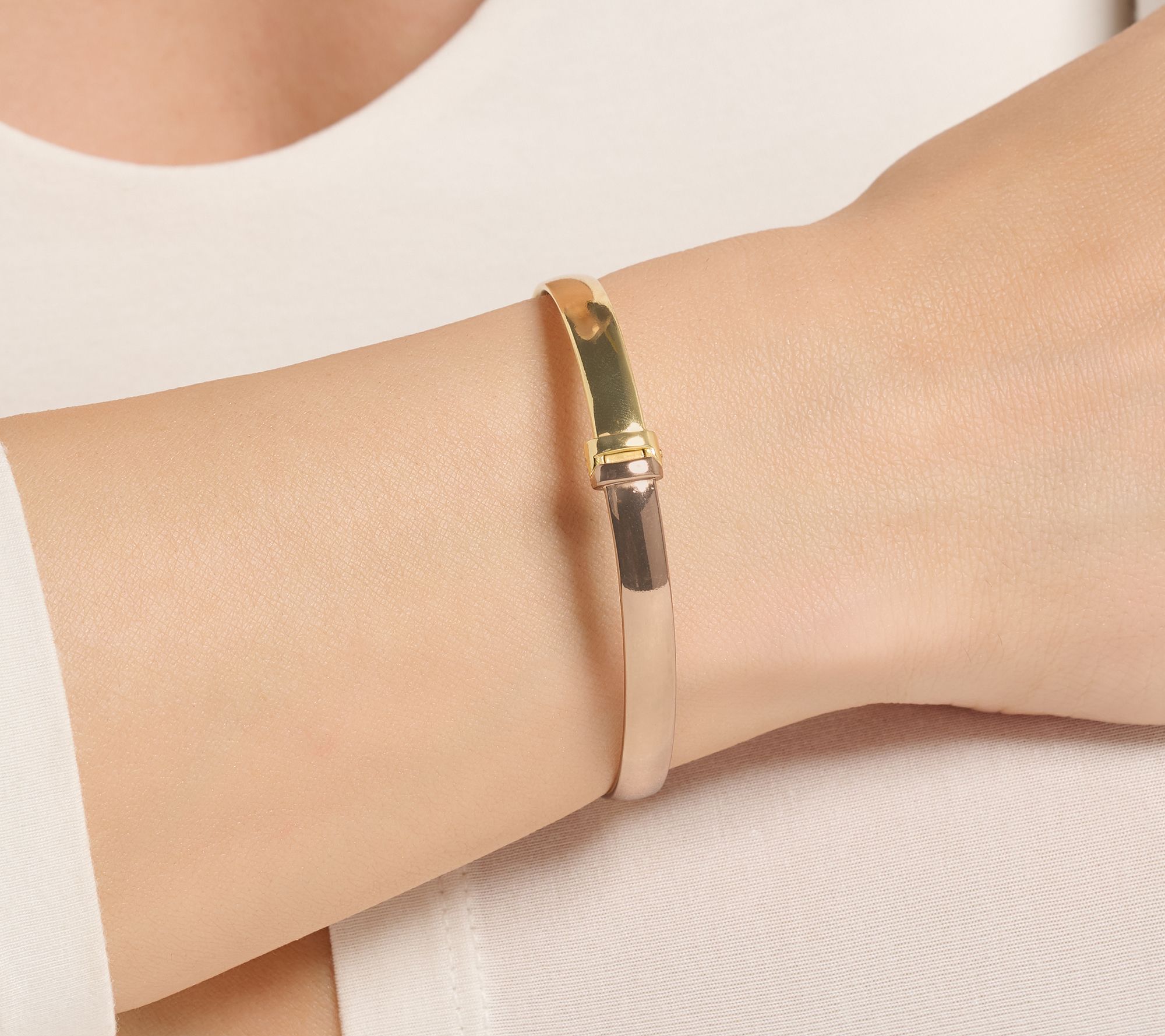 Slip on this polished bronze oval bangle for an effortless touch of Italian-inspired style, whether you're dressing up or adding a subtle shine to your everyday look. The hinged clasp and figure eight safety make it easy to wear and secure, while the range of colorways lets you coordinate with your favorite outfits or stack with other bracelets. From David Markstein.