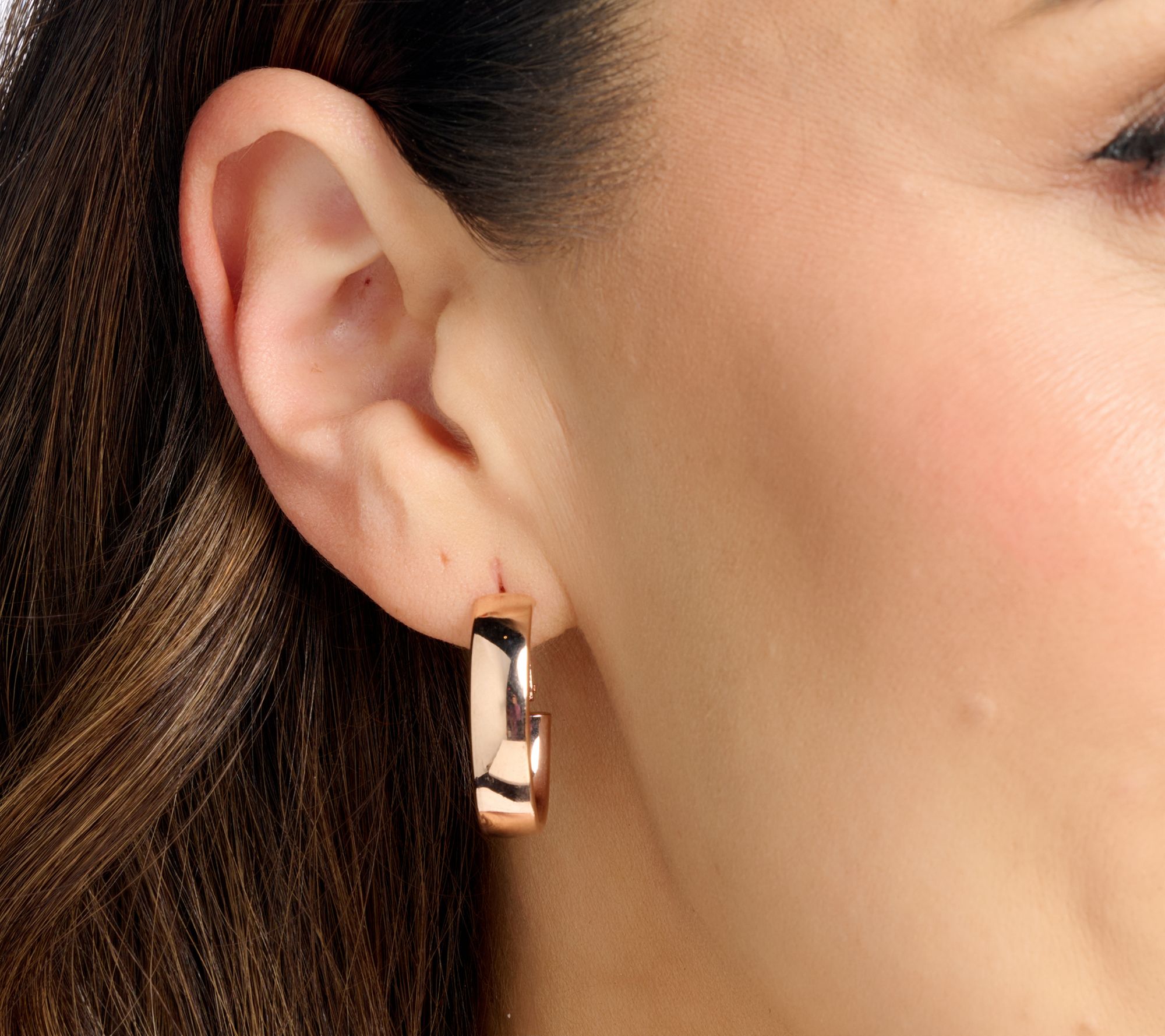 • Wide oval hoop design; polished finish