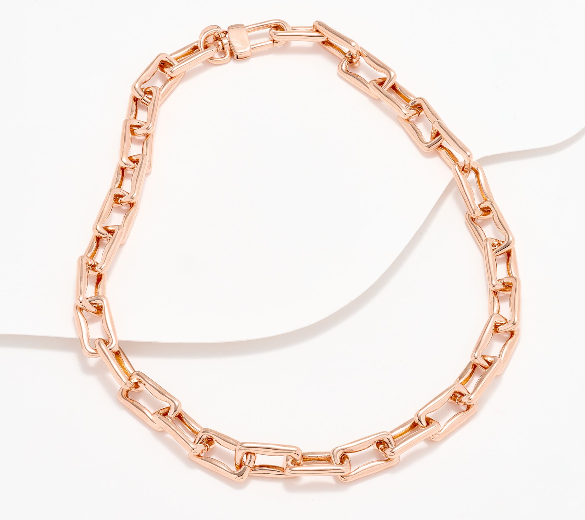 • Rectangular, organic-shaped, chunky link chain; polished finish