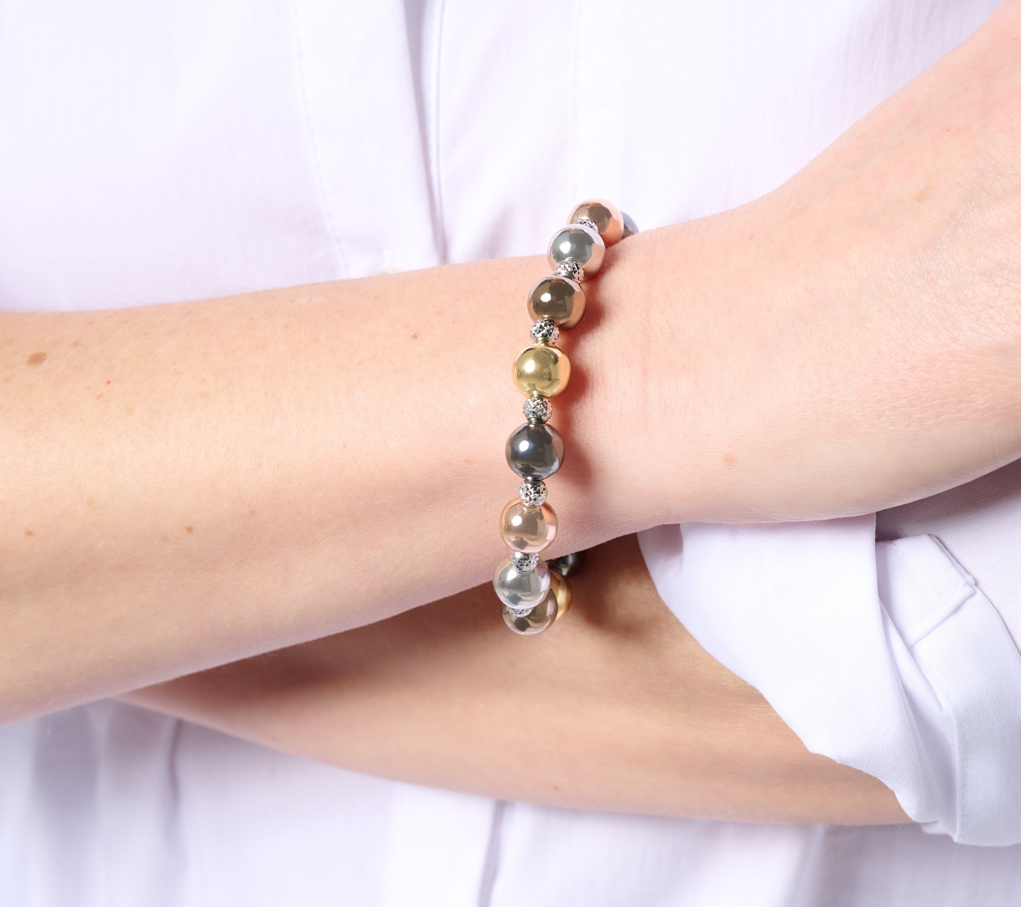 5mm diamond-cut beads alternating with 10mm polished beads; stretch design