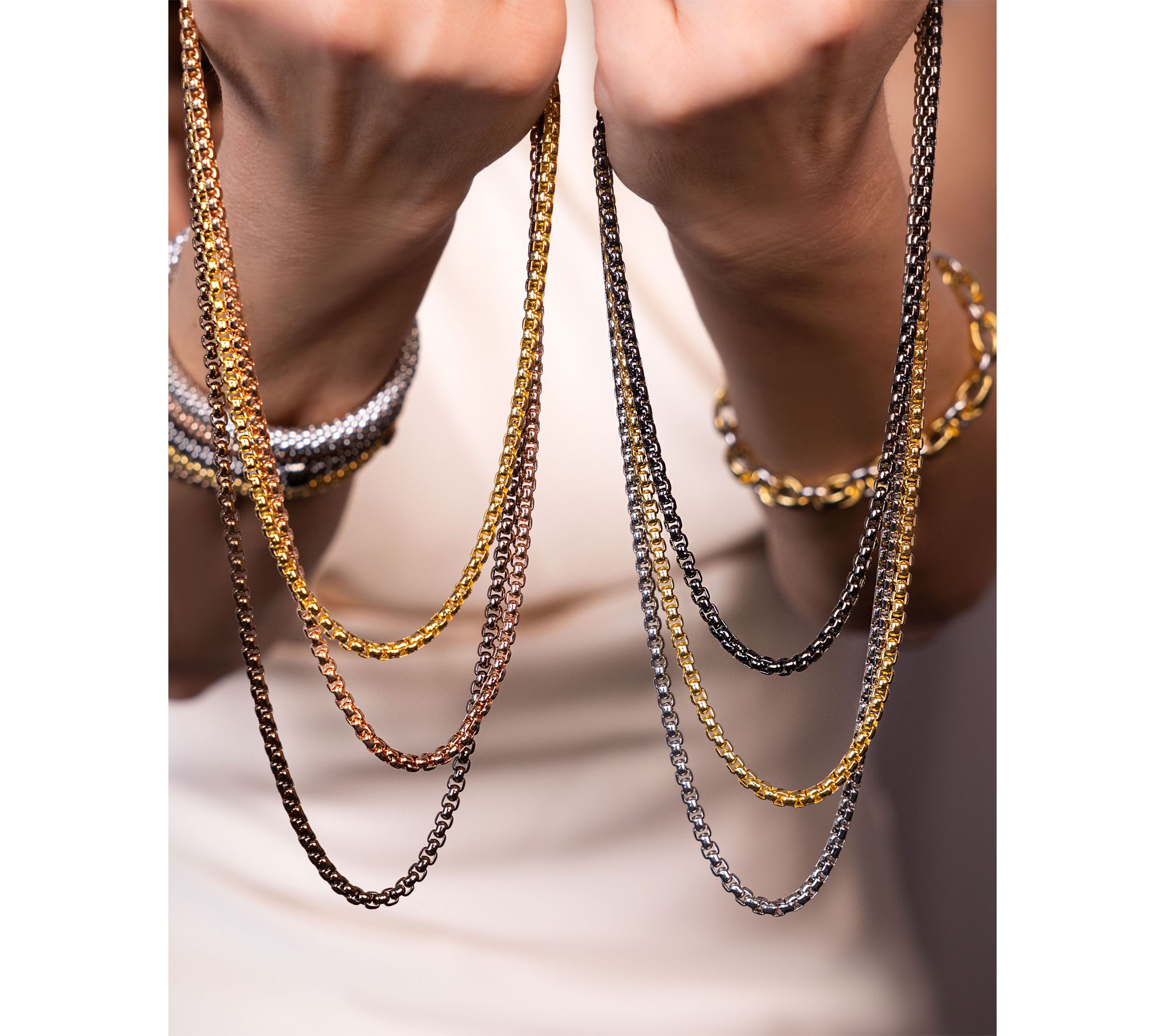 Polished finish; round box chain design