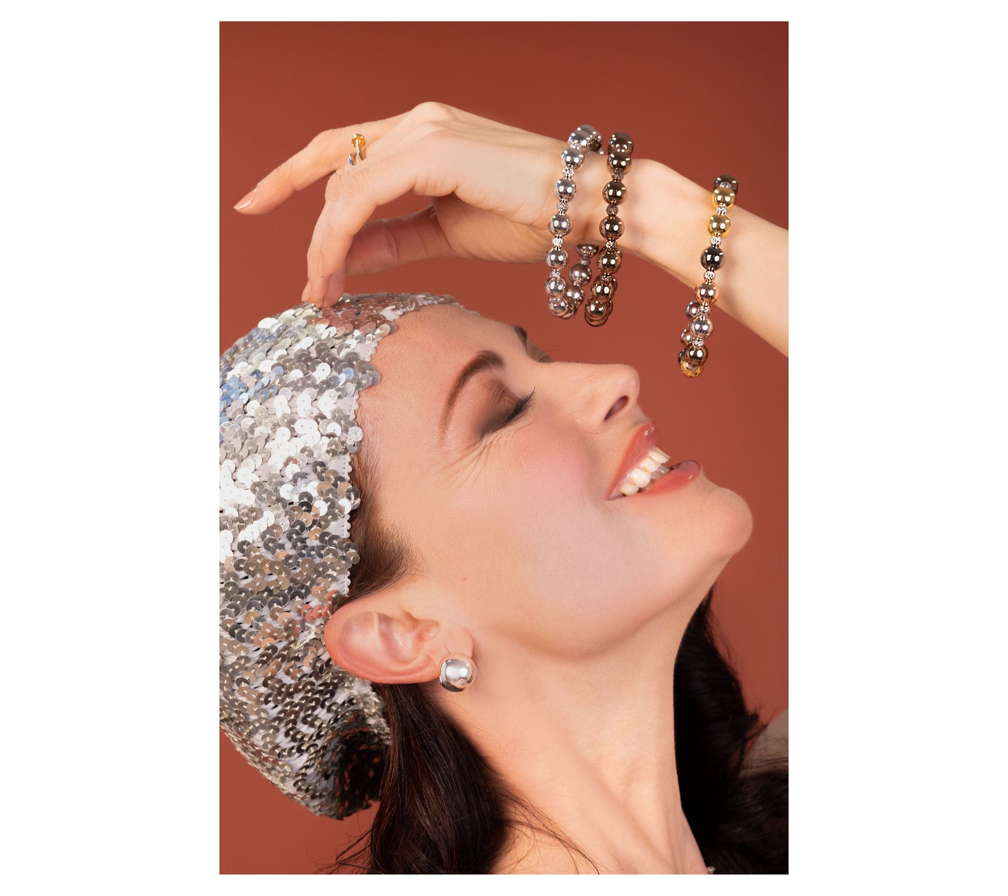Rhodium-plated bronze, 18K yellow gold-plated bronze, 18K rose gold-plated bronze, 18K mocha-plated bronze, black rhodium-plated bronze, or tri-color-plated bronze (18K yellow gold-plated/18K mocha-plated/18K rose gold-plated bronze)