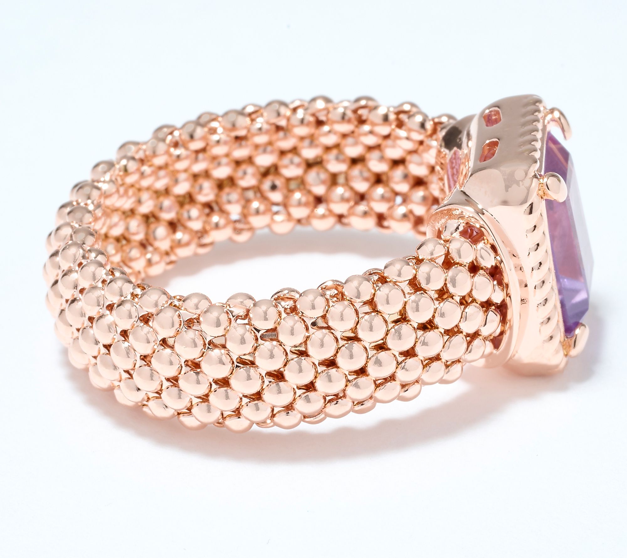 Slip on this striking ring when you want your style to stand out, whether it's brunch with friends or a special evening out. The bold emerald-cut center stone gleams from a beautifully woven bronze band. Its artful details make it a conversation piece you'll reach for whenever an outfit calls for a splash of color. From David Markstein.