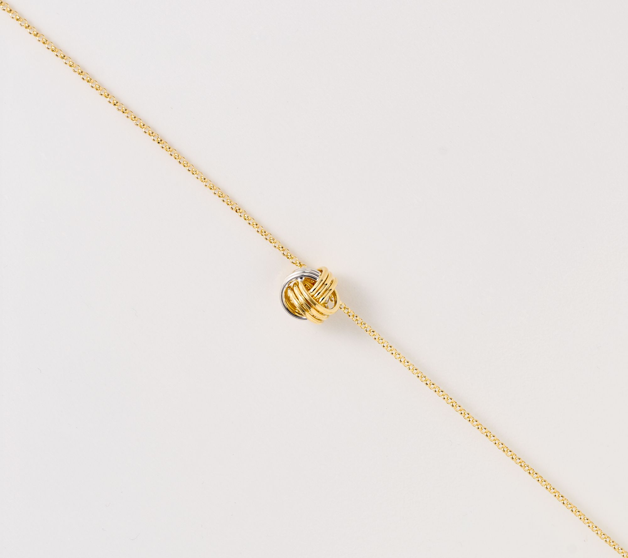 • Polished love knot slide pendant; rolo chain; pendant is not removable; polished finish
