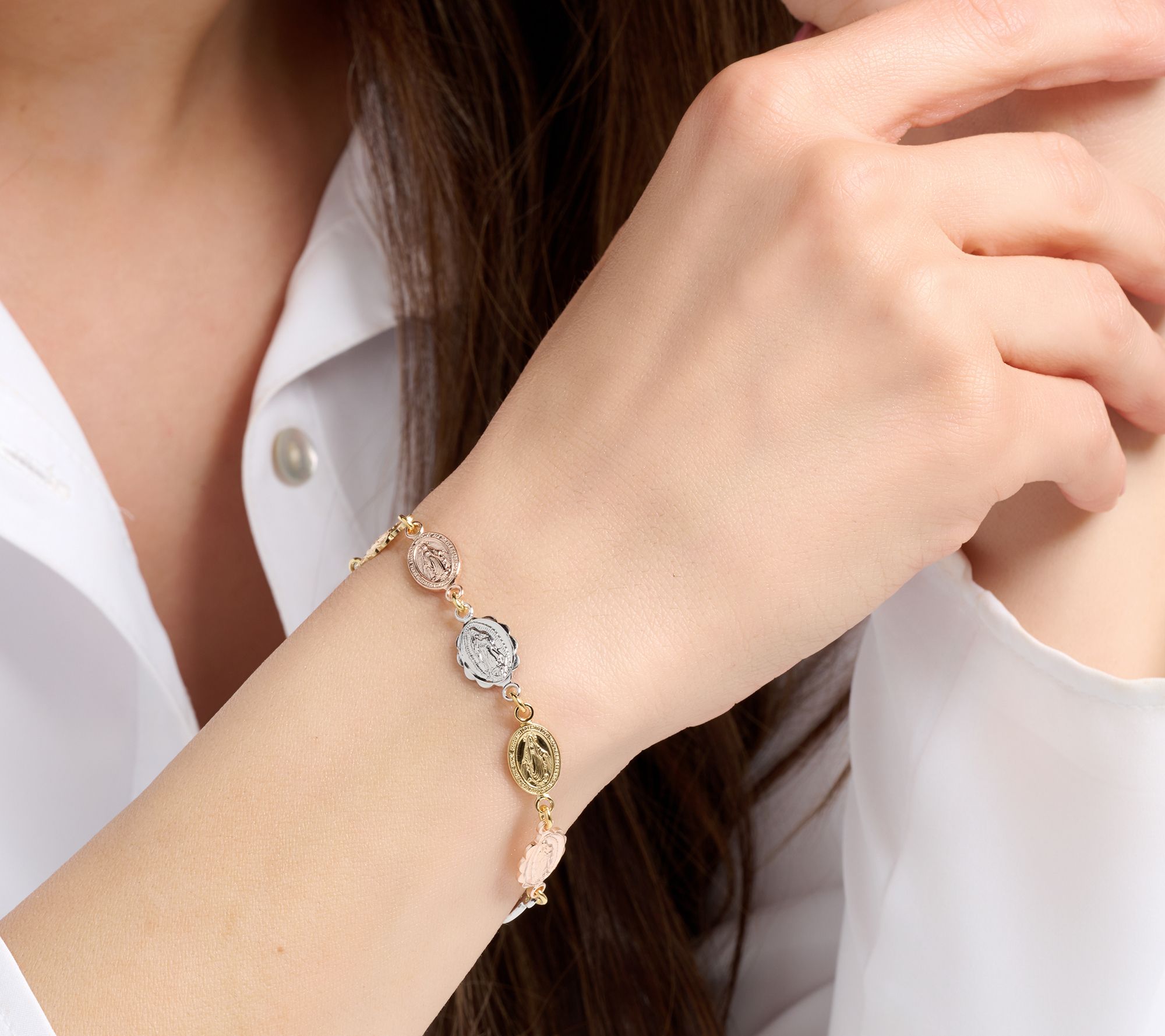 Religious medallion design; polished finish
