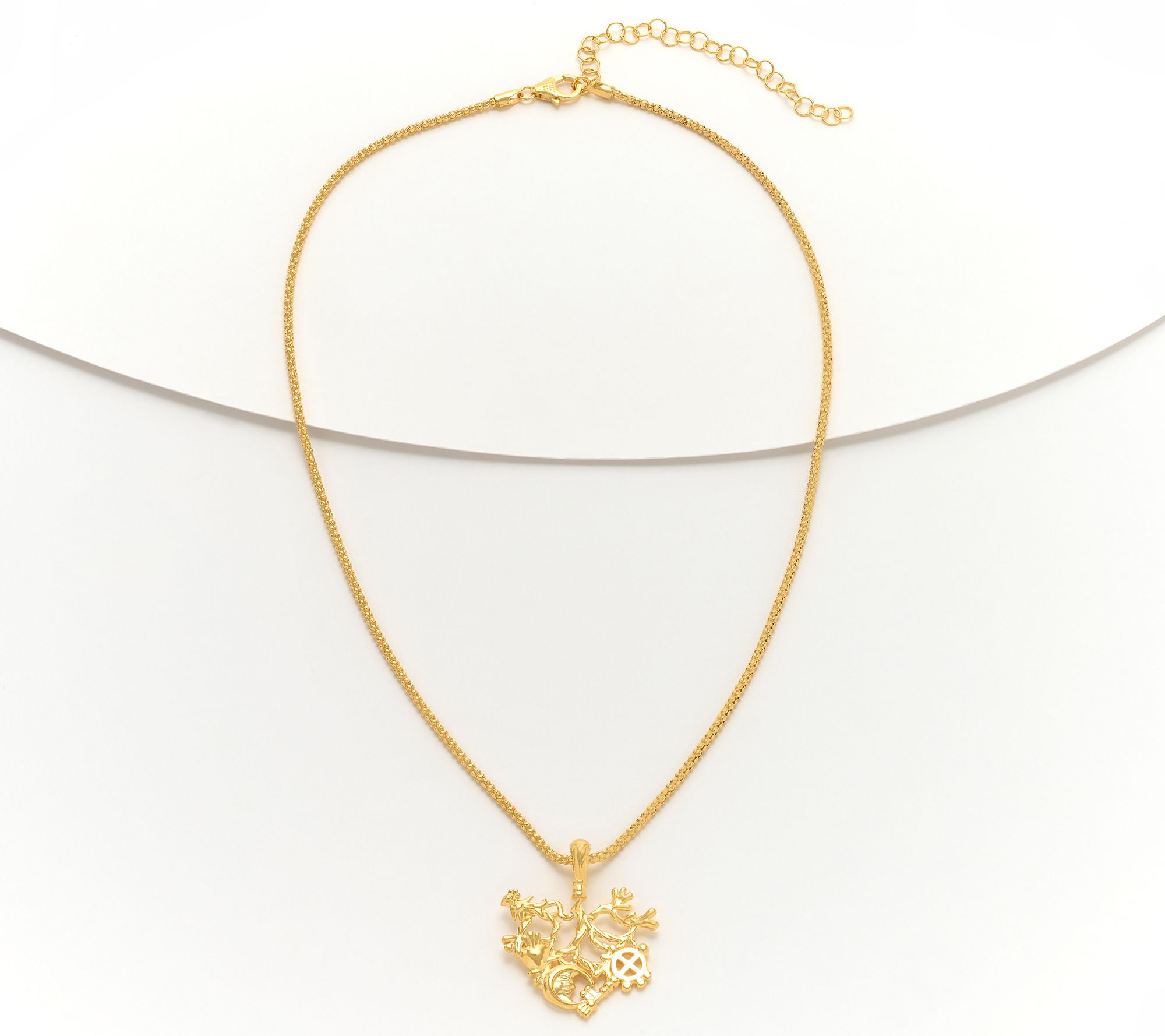• Approximate measurements: Chain 17"L x 1/16"W, plus a 3"L extender; Pendant 1-1/4"L x 1-1/8"W