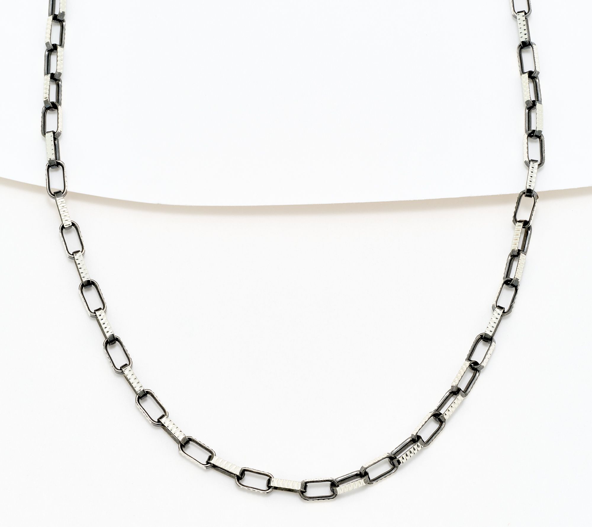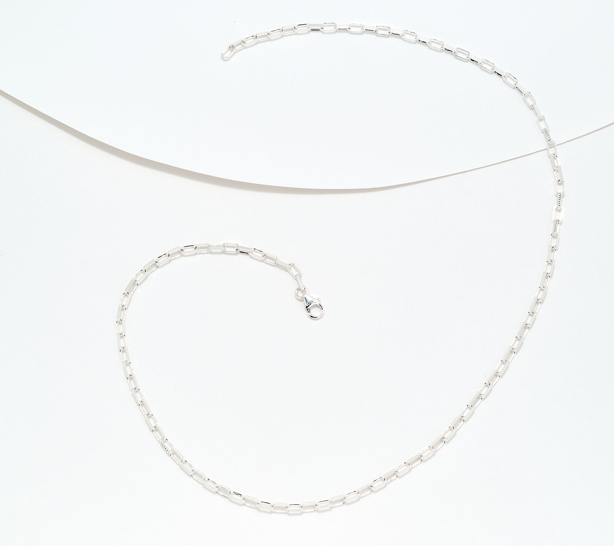 • Elongated oval links; diamond-cut finish