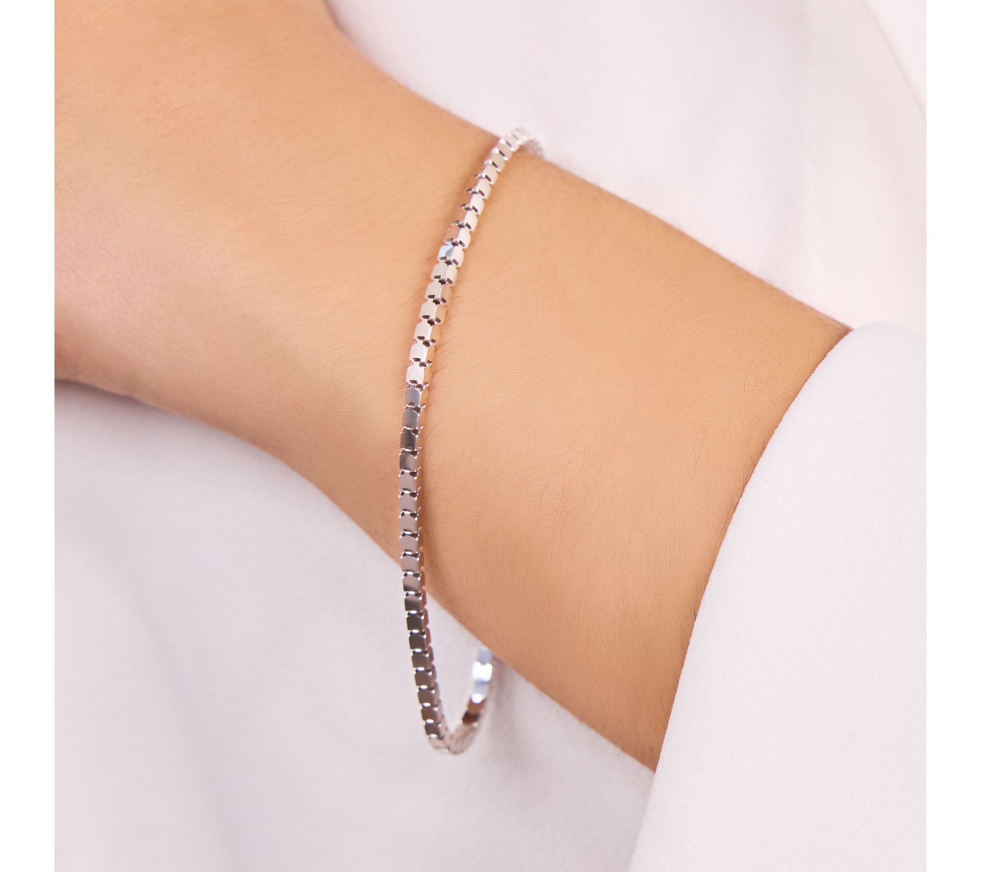 Sleek, geometric style meets sophisticated shine in this bracelet, adding eye-catching dimension to any outfit. Whether you're dressing up for a night out or styling your daily look, the super cube-style chain design effortlessly layers with your favorite pieces for modern elegance. From David Markstein.