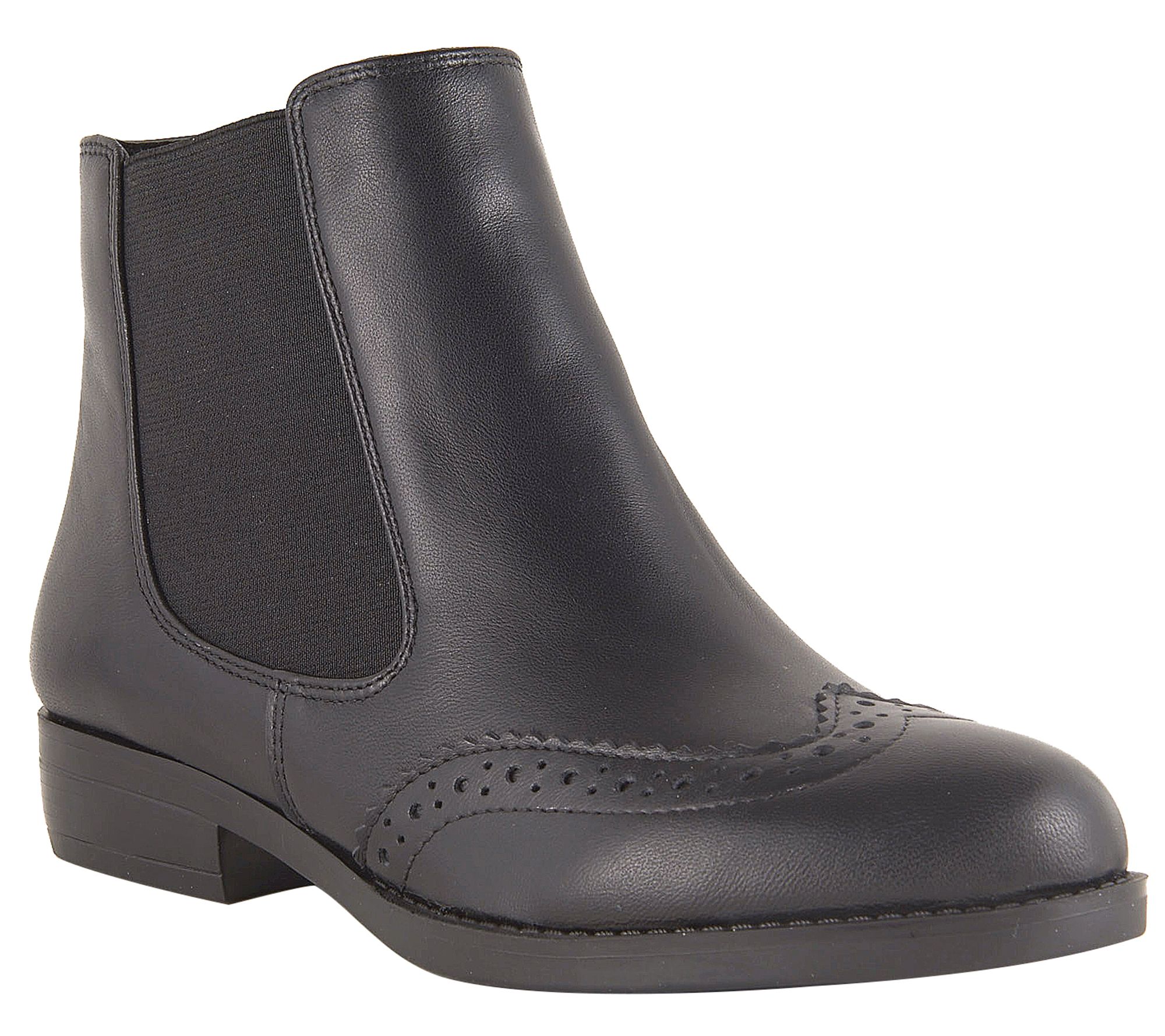 • Side zip closure, wing tip, elastic gore side panels, rounded toe