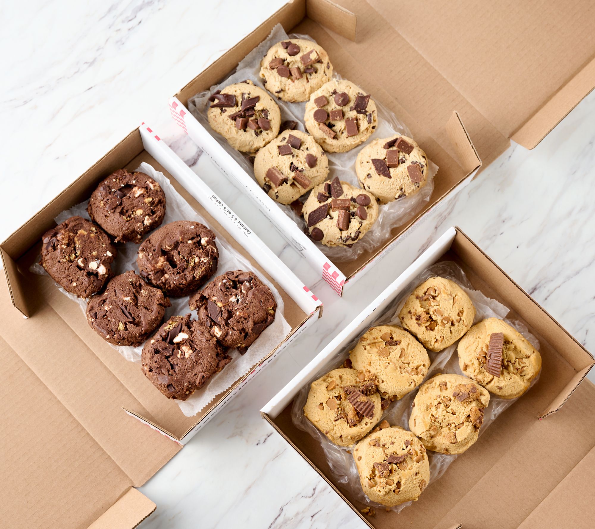 • Includes 18 4.5-oz ready-to-bake cookies: six each of s'mores, peanut butter cup, and triple chocolate