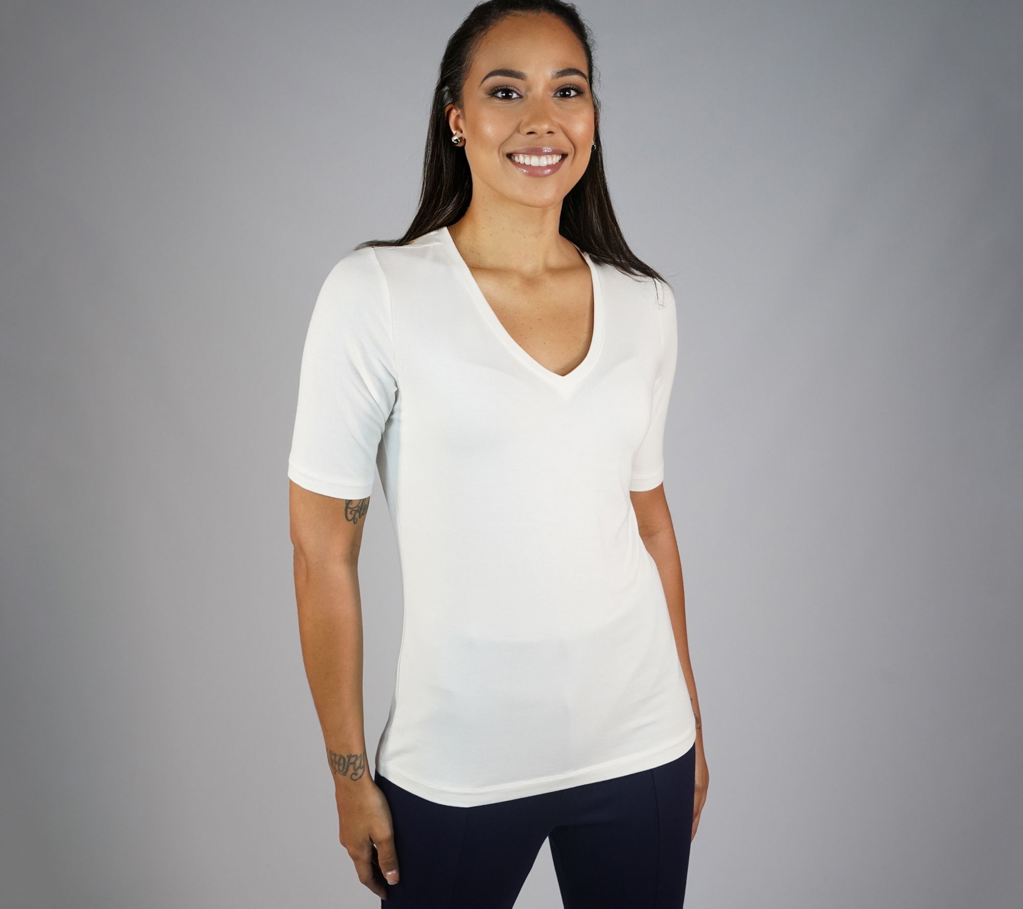Day2Day by Duette NYC Regular Elbow-Sleeve V-Neck Top