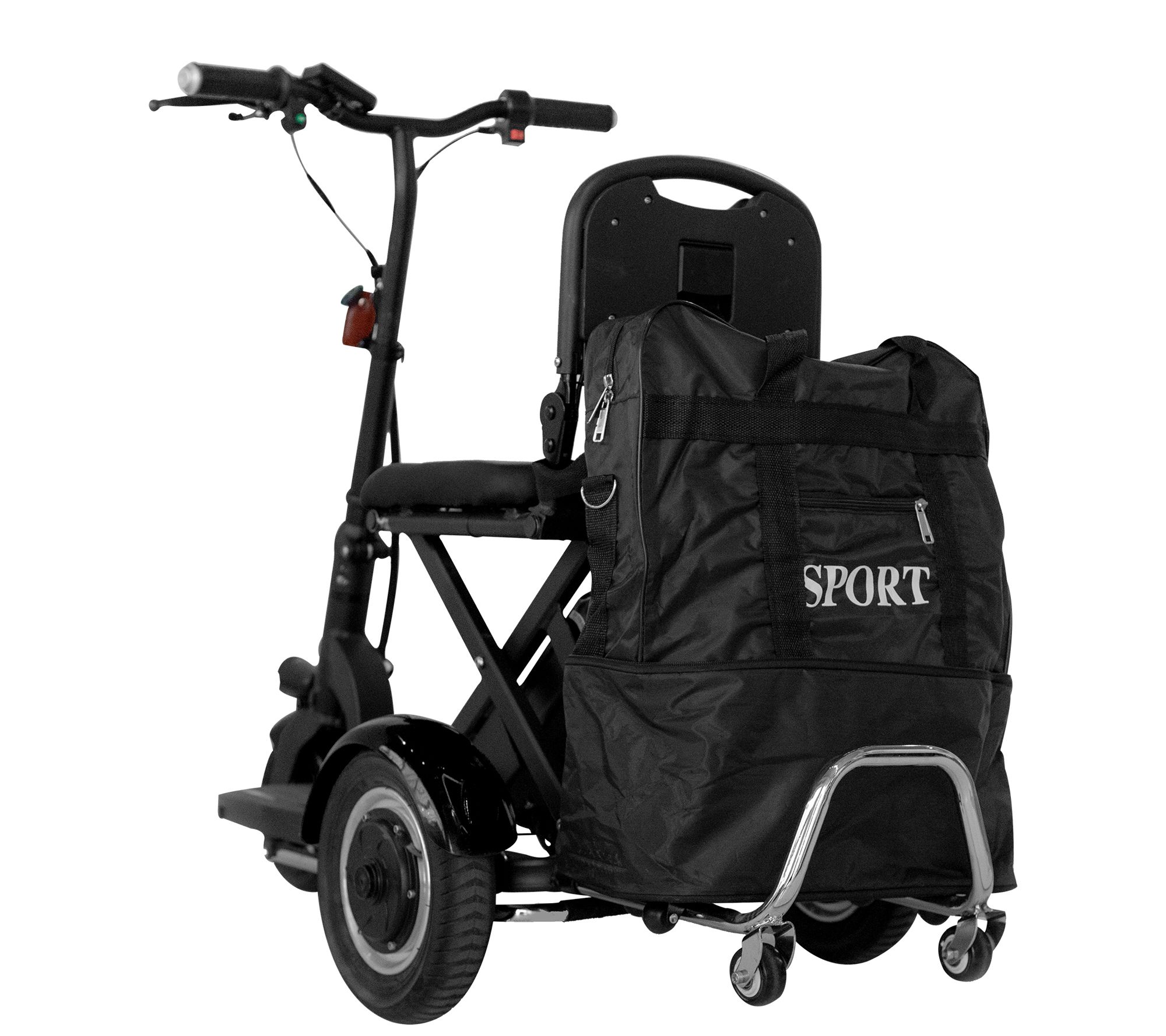 • Includes scooter, charger, rechargeable lithium-ion battery, and luggage bag