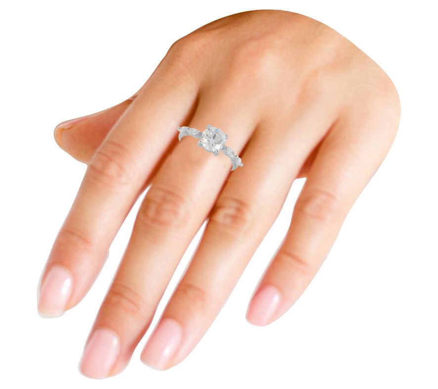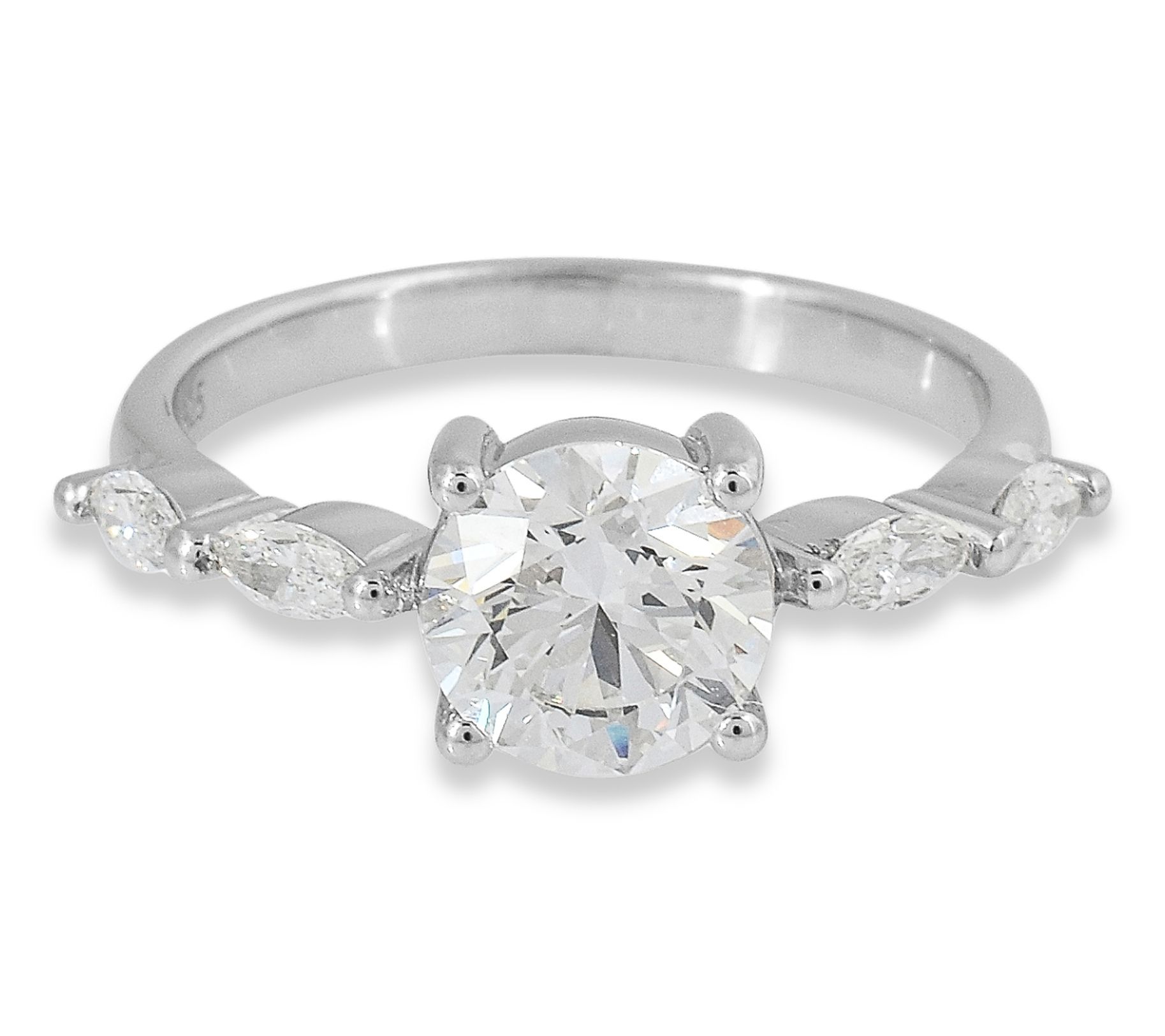 Round-cut and marquise-cut lab-grown diamonds; prong settings