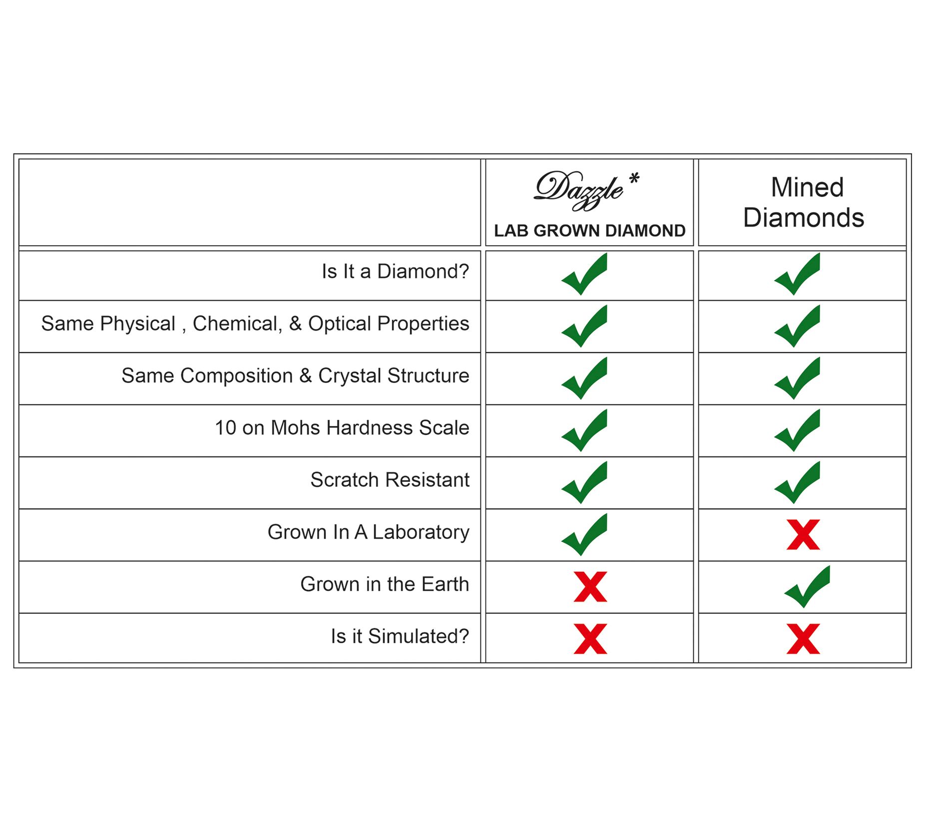 Same GIA Standards: lab-grown diamonds are judged by the GIA standards used for mined diamonds: color, cut, clarity, and carat weight