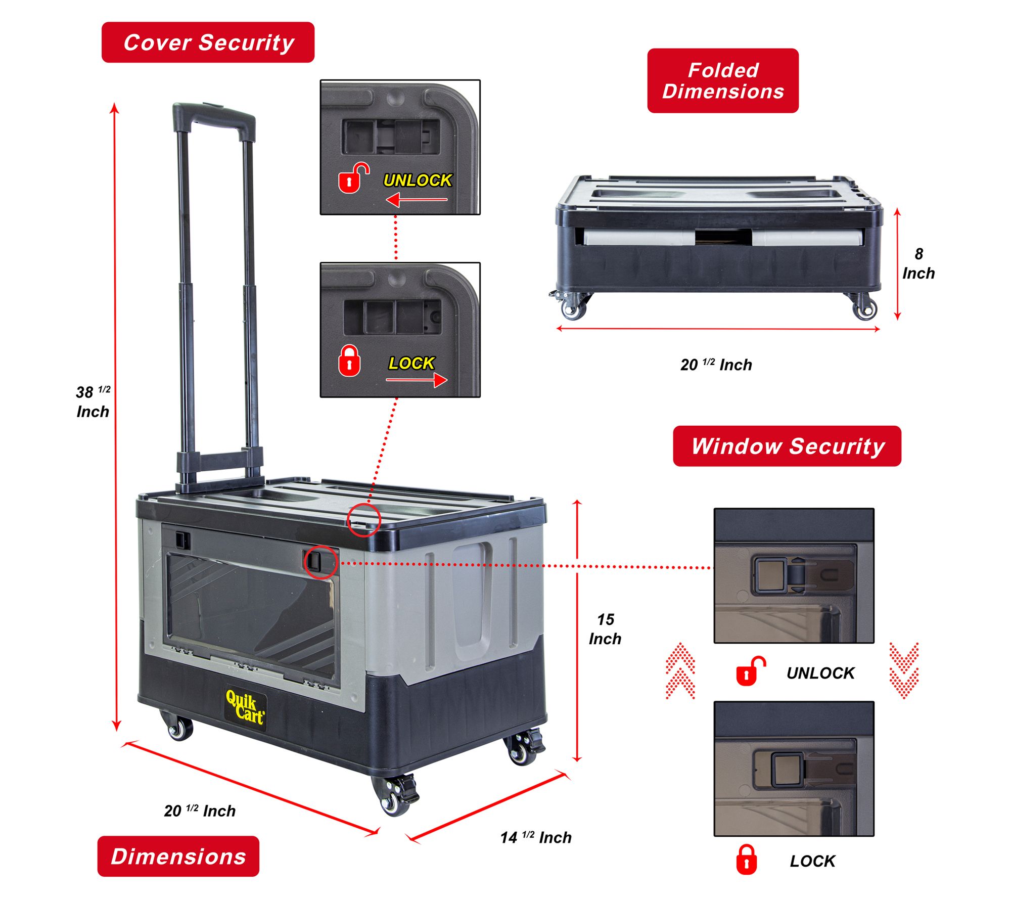• Lockable lid attaches to the cart