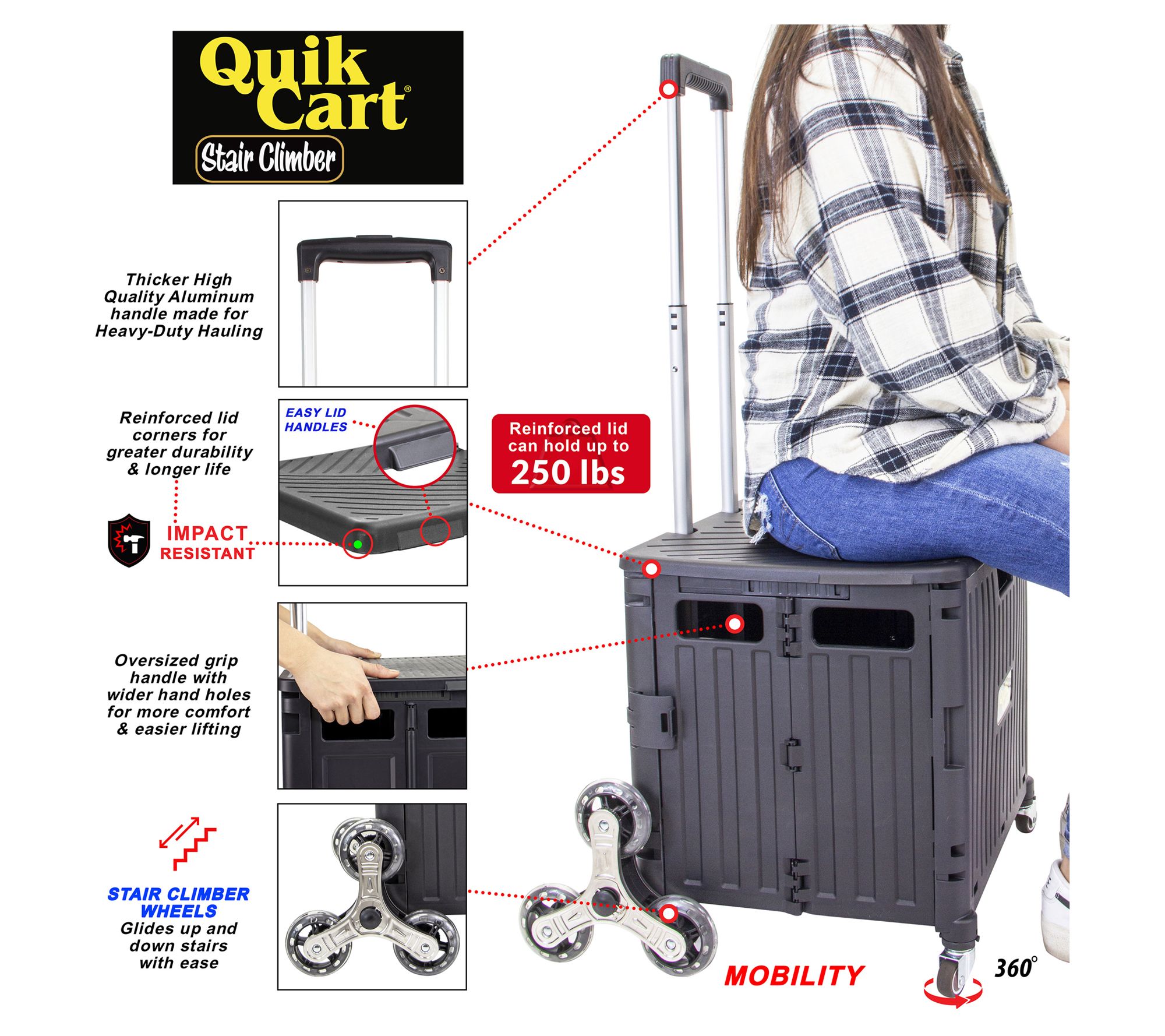 Lid supports up to 250 lbs, doubling as a seat or stepstool