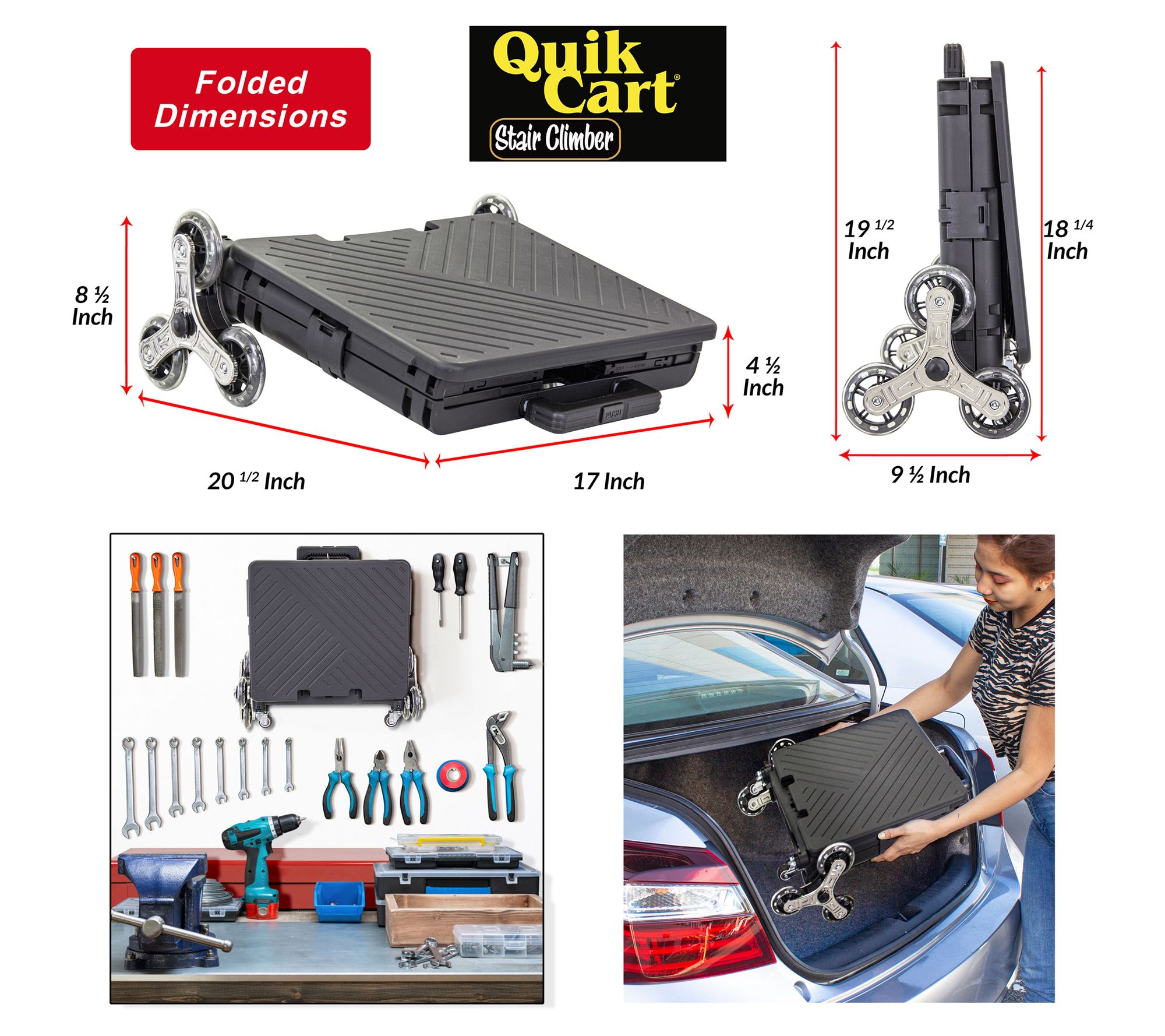 Refurbished: The manufacturer's inspection process ensures products have been repaired and restored to like-new condition. All parts and accessories that would have been included with the original product are present. Make your life easier with the dbest products Quik Cart Stair Climber, a game-changer for anyone living in multi-story buildings. This innovative cart simplifies the daunting task of carrying heavy loads upstairs, thanks to its dual tri-wheel design that effortlessly climbs stairs. Whether you're a teacher laden with books, a handyman with tools, or simply returning from a grocery run, this collapsible cart is designed to handle a variety of needs, seamlessly transforming from a sturdy carrying crate to a compact, easily stored unit. From dbest products.