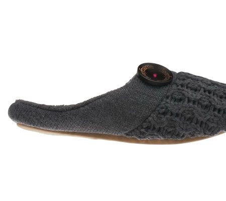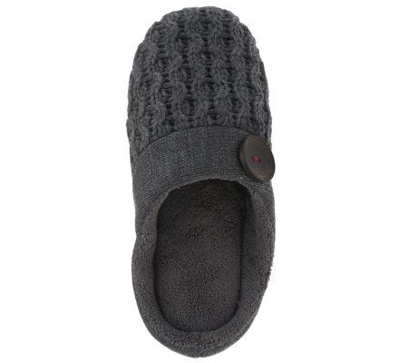 Dearfoams Sweater Knit Soft Sole Scuff with Button Detail