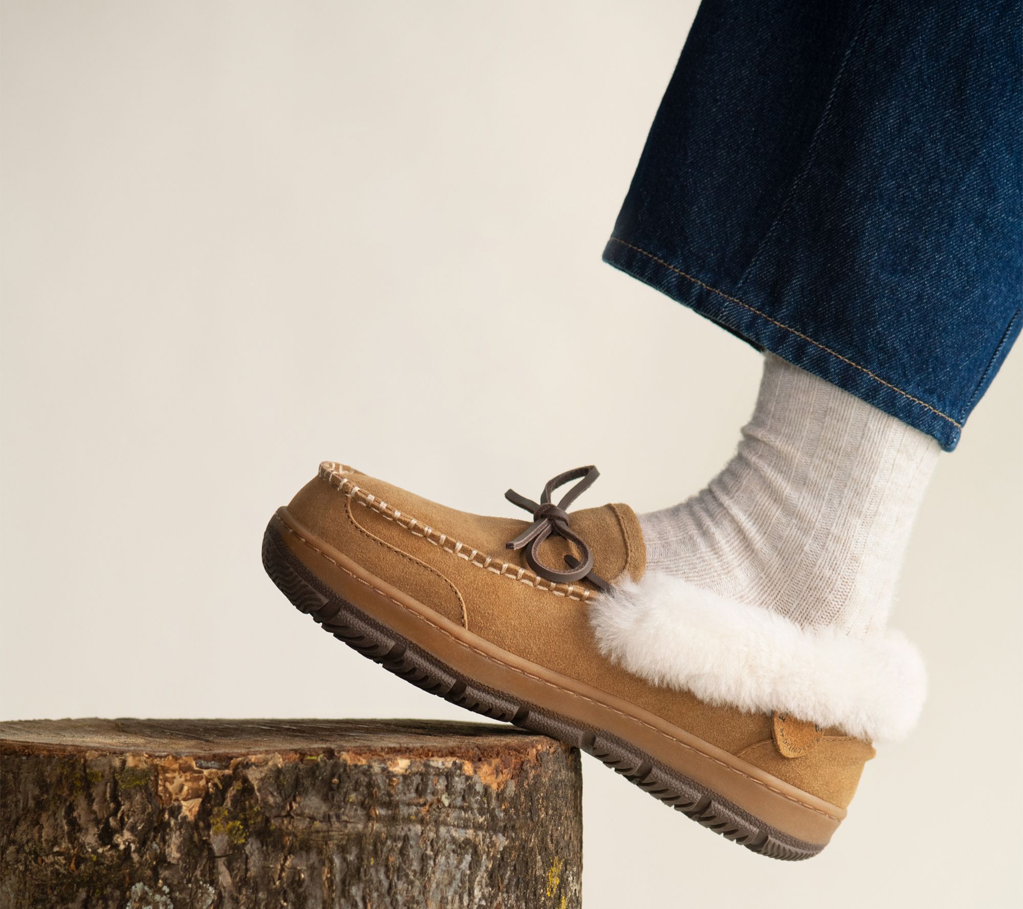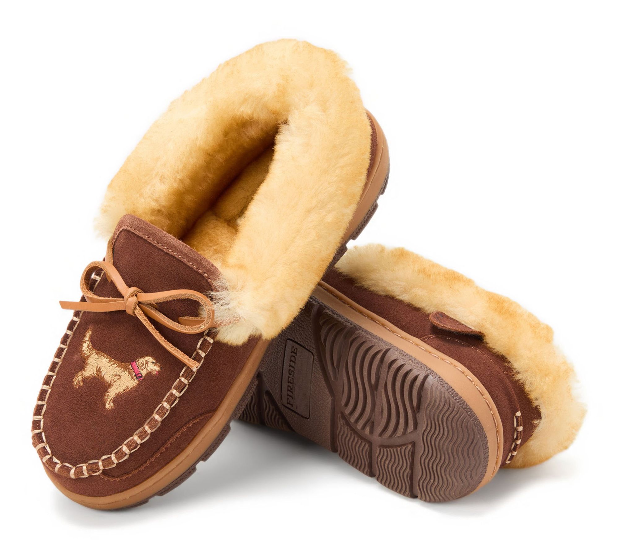 Treat your feet to cozy comfort after a long day with these moccasin slippers, designed to bring a soft touch of luxury to your routine. Whether you're relaxing at home or padding around the kitchen for your morning coffee, plush shearling keeps every step cushioned and warm. From Dearfoams.