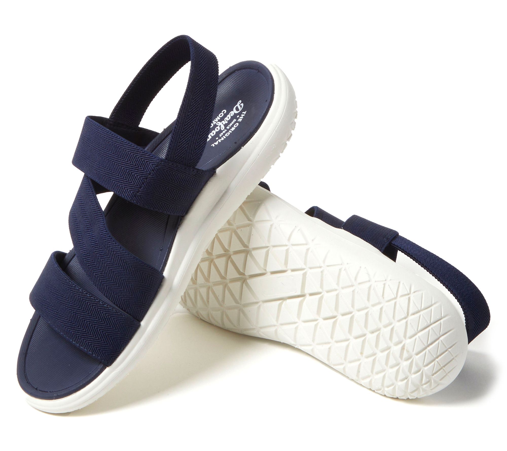 Make every step count with these Dearfoams women's sling back sandals. Perfect for spring and summer, their stretchy design and relaxed fit ensure comfort all day long. Whether you're exploring a new city or enjoying a casual walk in a nearby park, the arch support and memory foam cushioning will keep your feet happy. From Dearfoams.