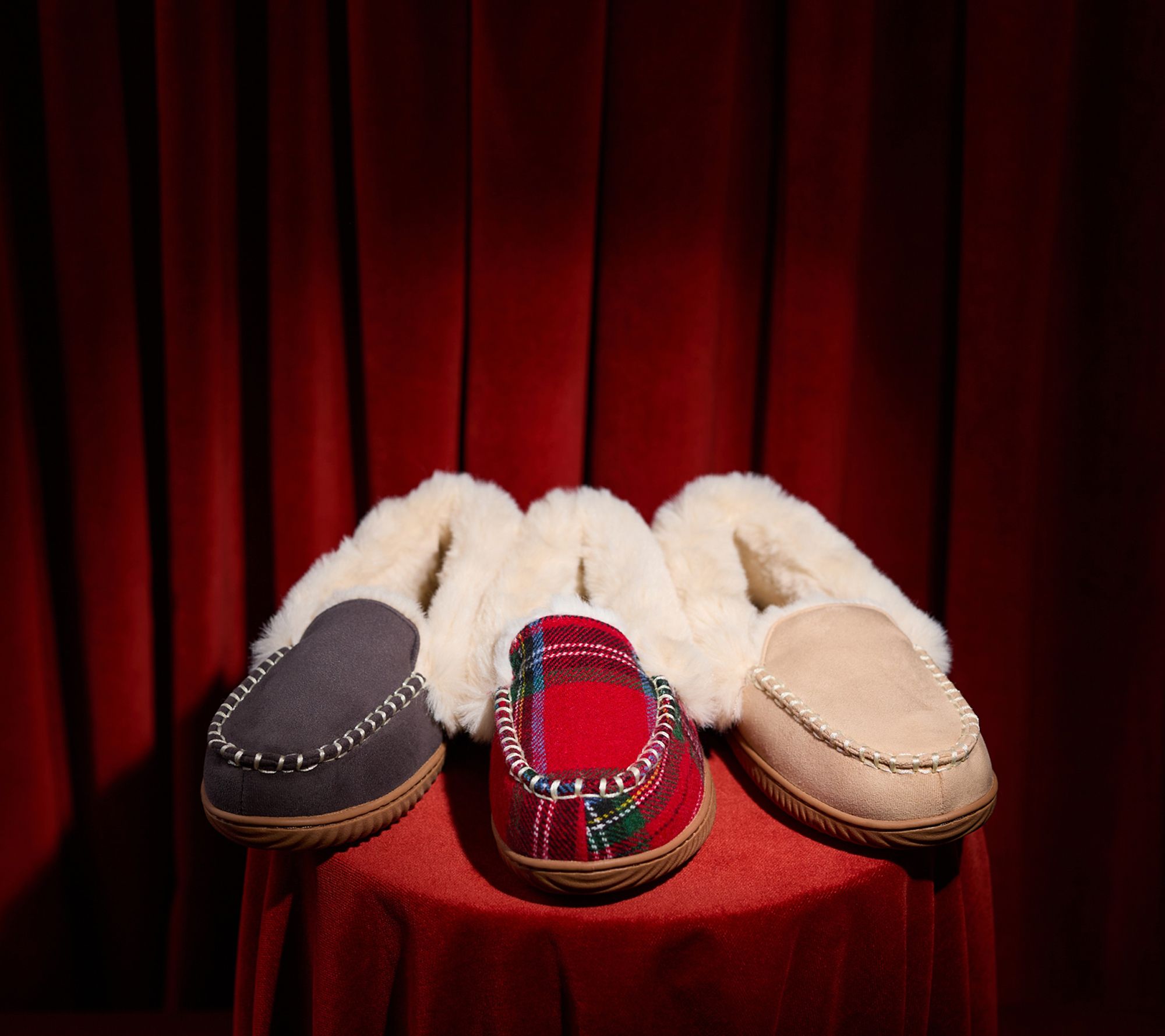 Whether you're settling in for a movie marathon or curling up with a good book, these moccasin slippers cradle your feet in plush memory foam comfort. The classic silhouette and soft upper offer a relaxed look, while the durable sole makes it easy to move from bedroom to living room and beyond. From Dearfoams.