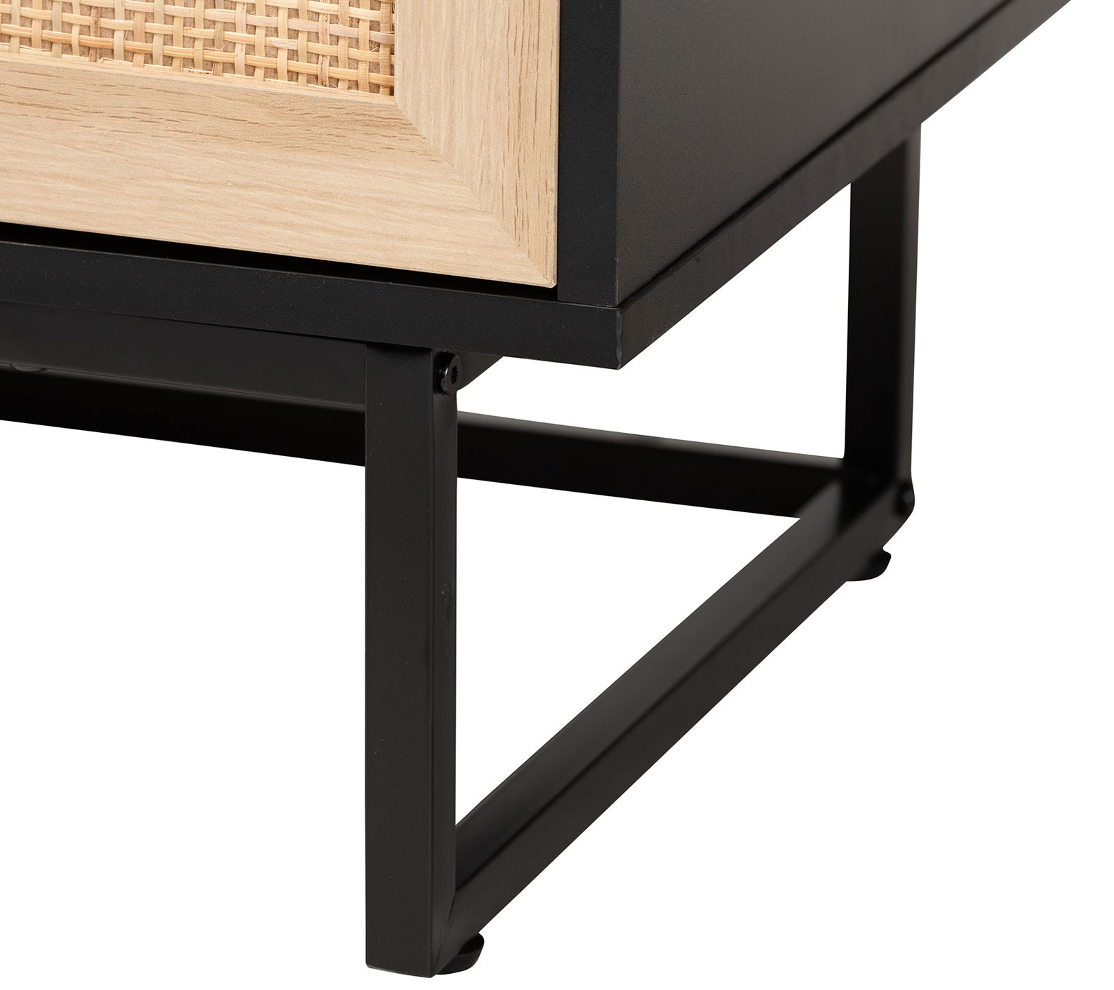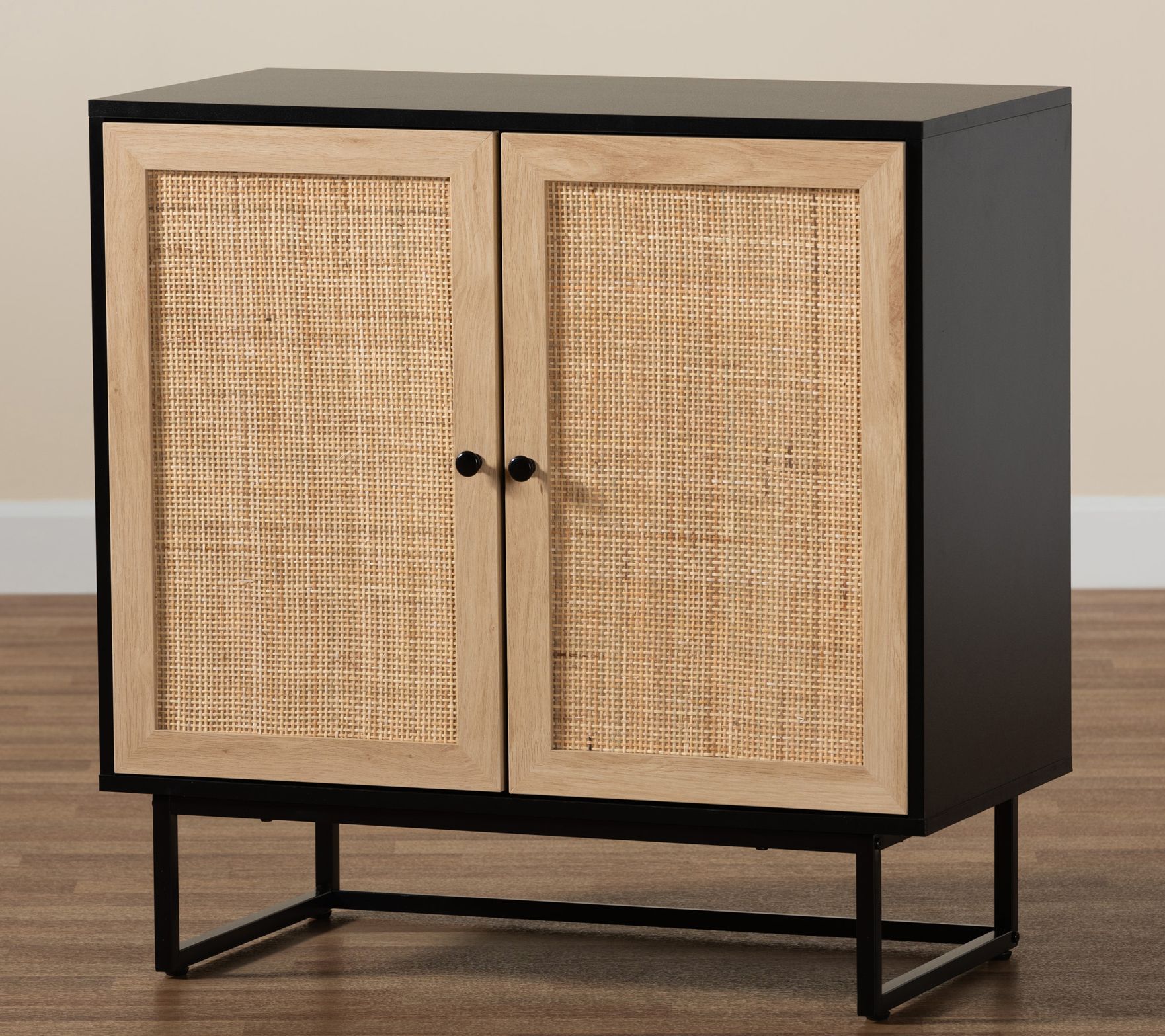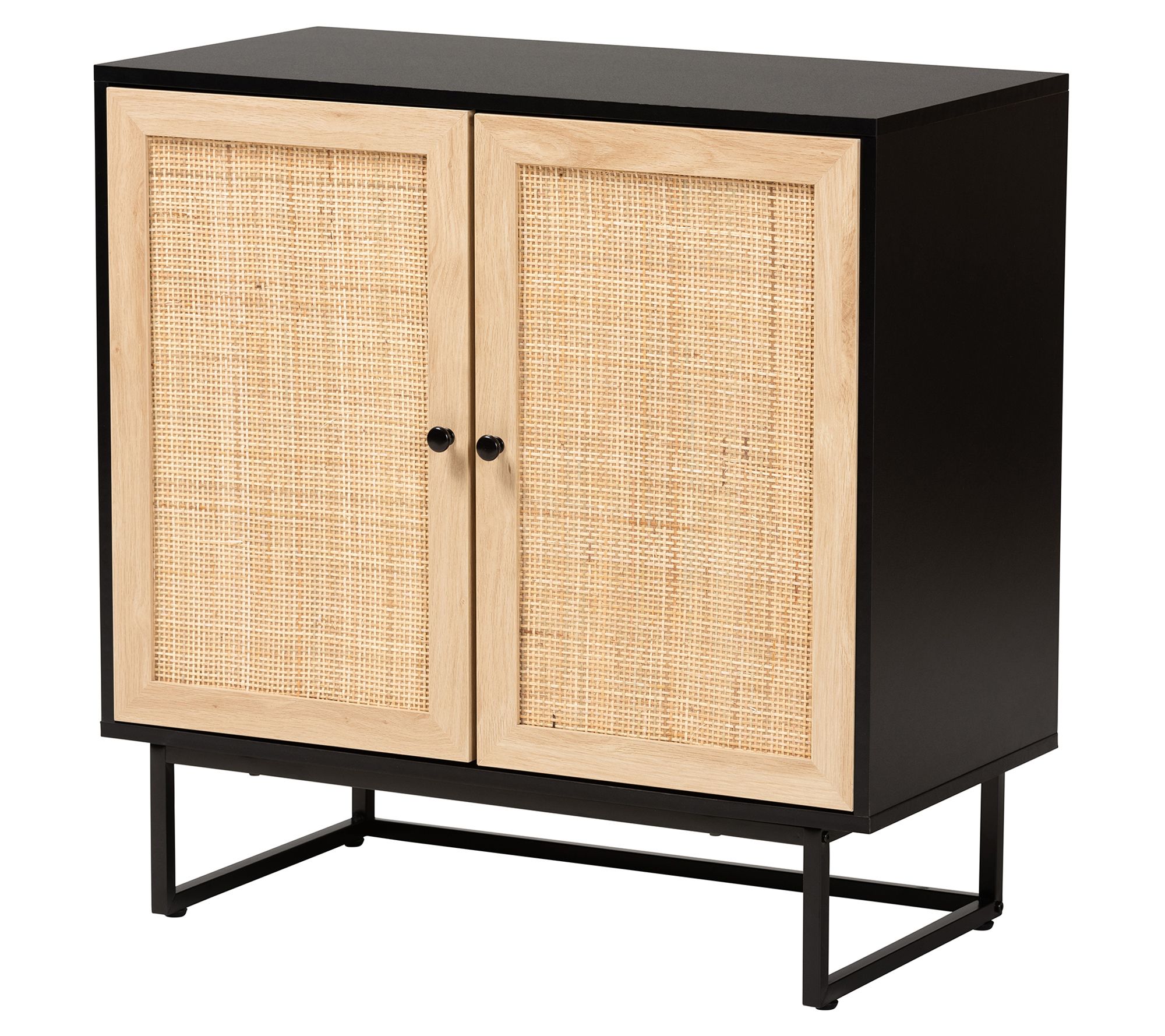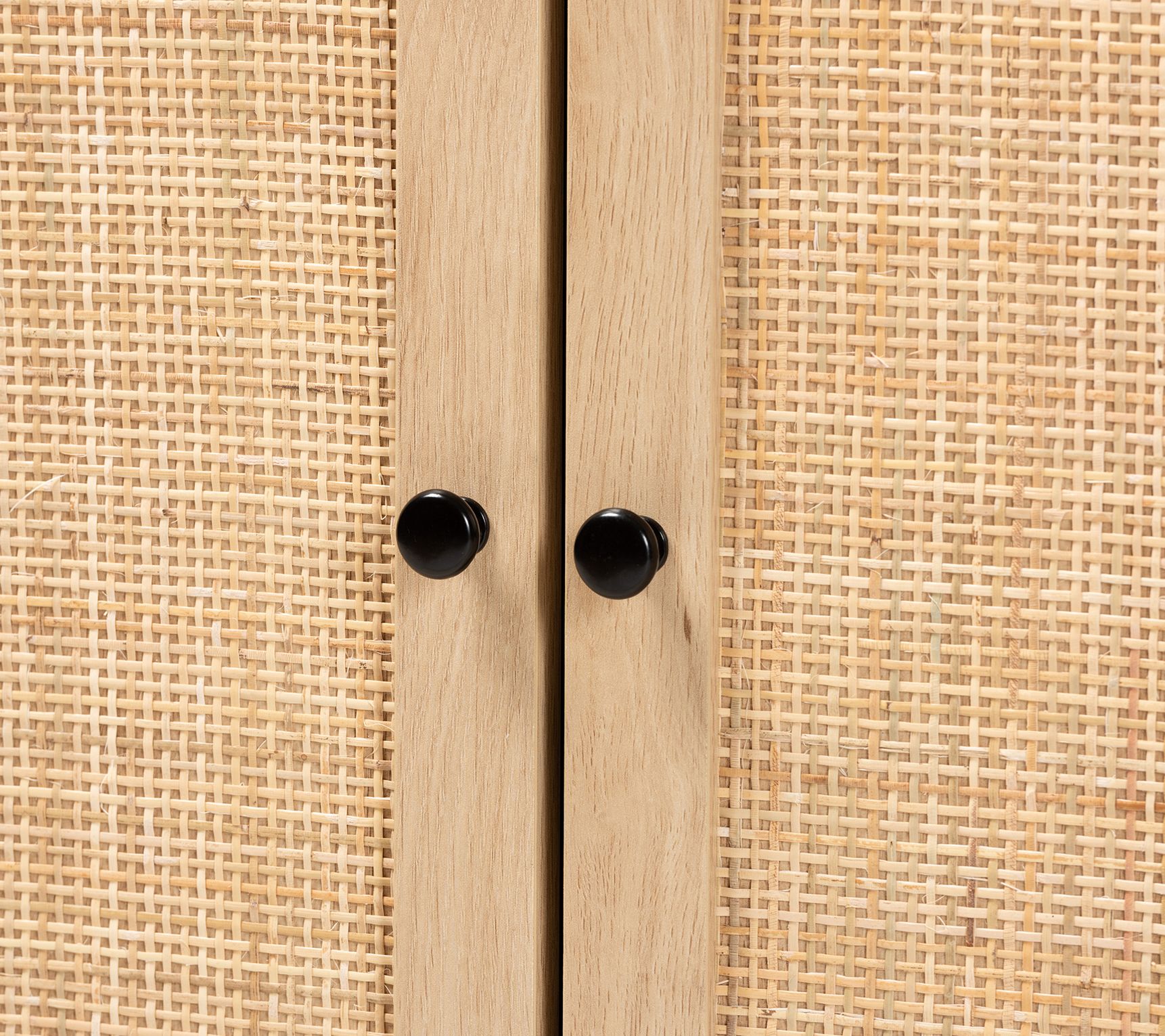 Declan Wood and Natural Rattan 2-Door Storage Cabinet