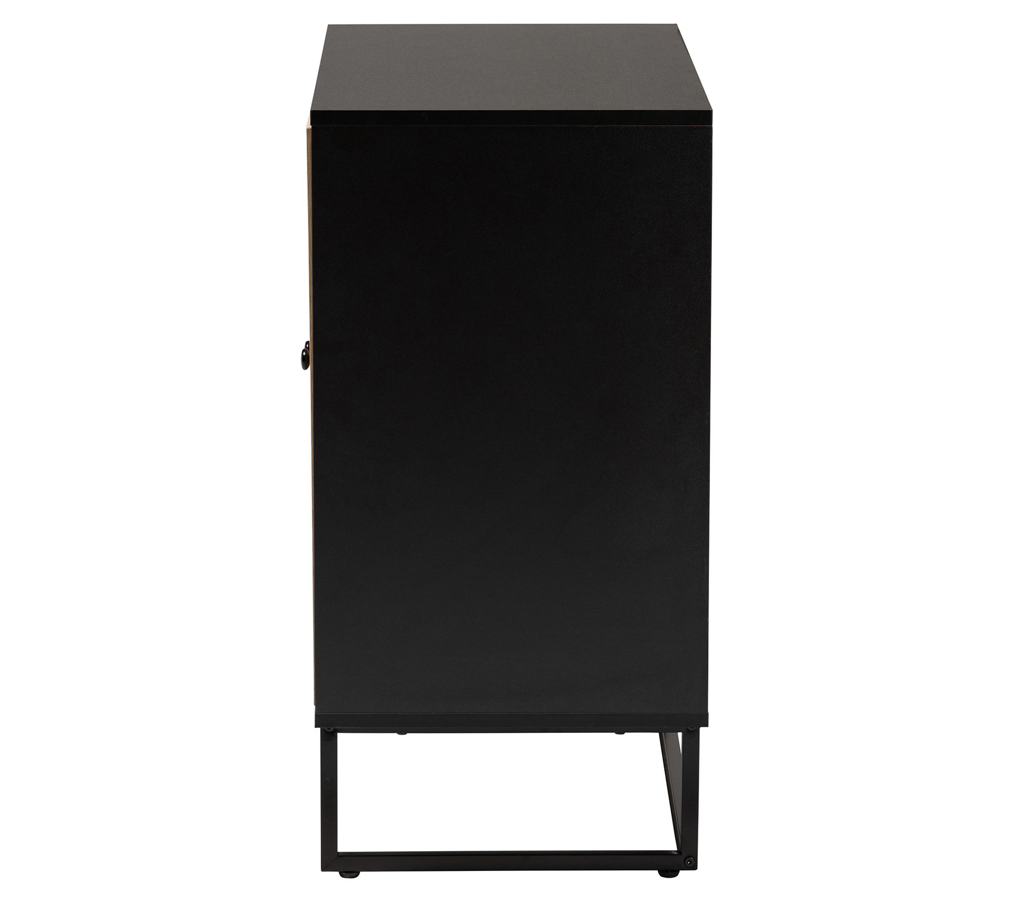 Provide some much-needed storage for your space with this handsome cabinet featuring woven rattan embellishments and two spacious shelves inside. From Baxton Studio.