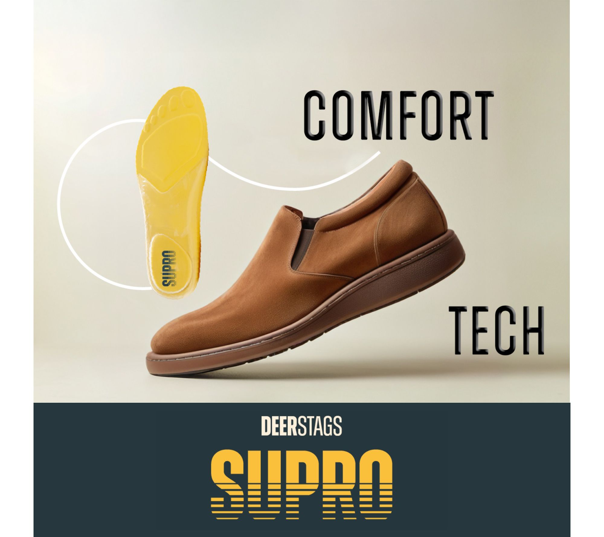 Whether heading to the office or catching up with friends, these Dominic sneakers blend unbeatable comfort and effortless style for every moment of your day. Bungee laces and slip-on ease pair with the SUPRO INSIDE footbed, offering radical rebound technology and ultra-cushioned padding to keep you energized through long hours on your feet. From Deer Stags.