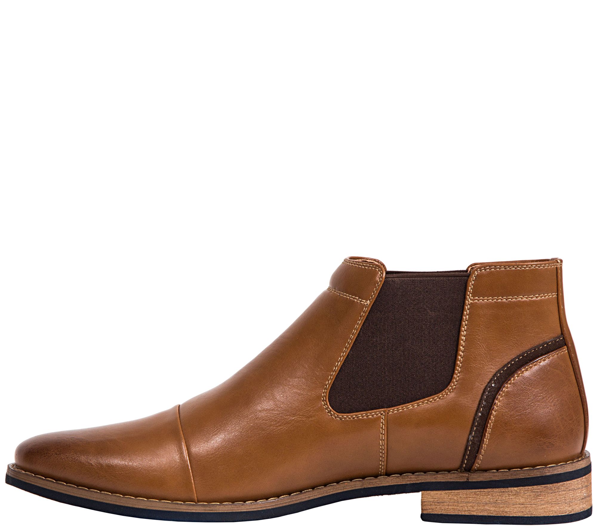 • Synthetic leather upper with microsuede details around collar, Chelsea design, cap toe