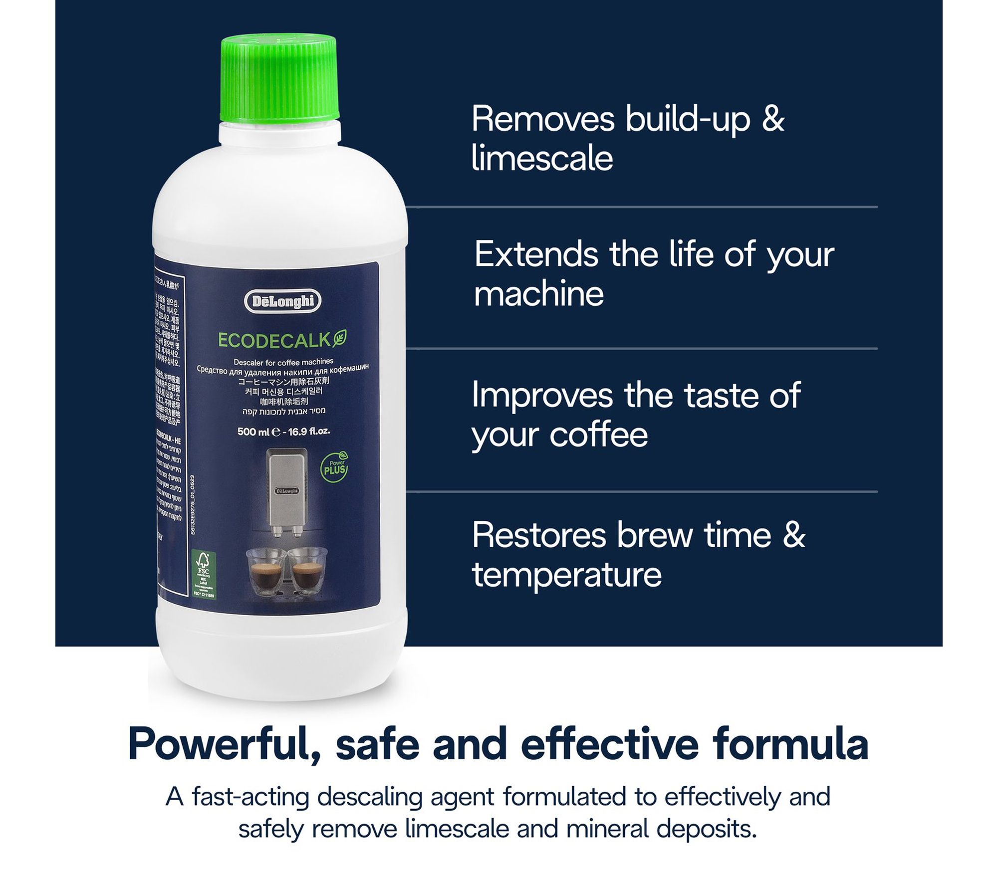 • Powerful descaling and cleaning solutions tackle mineral deposits and milk residue