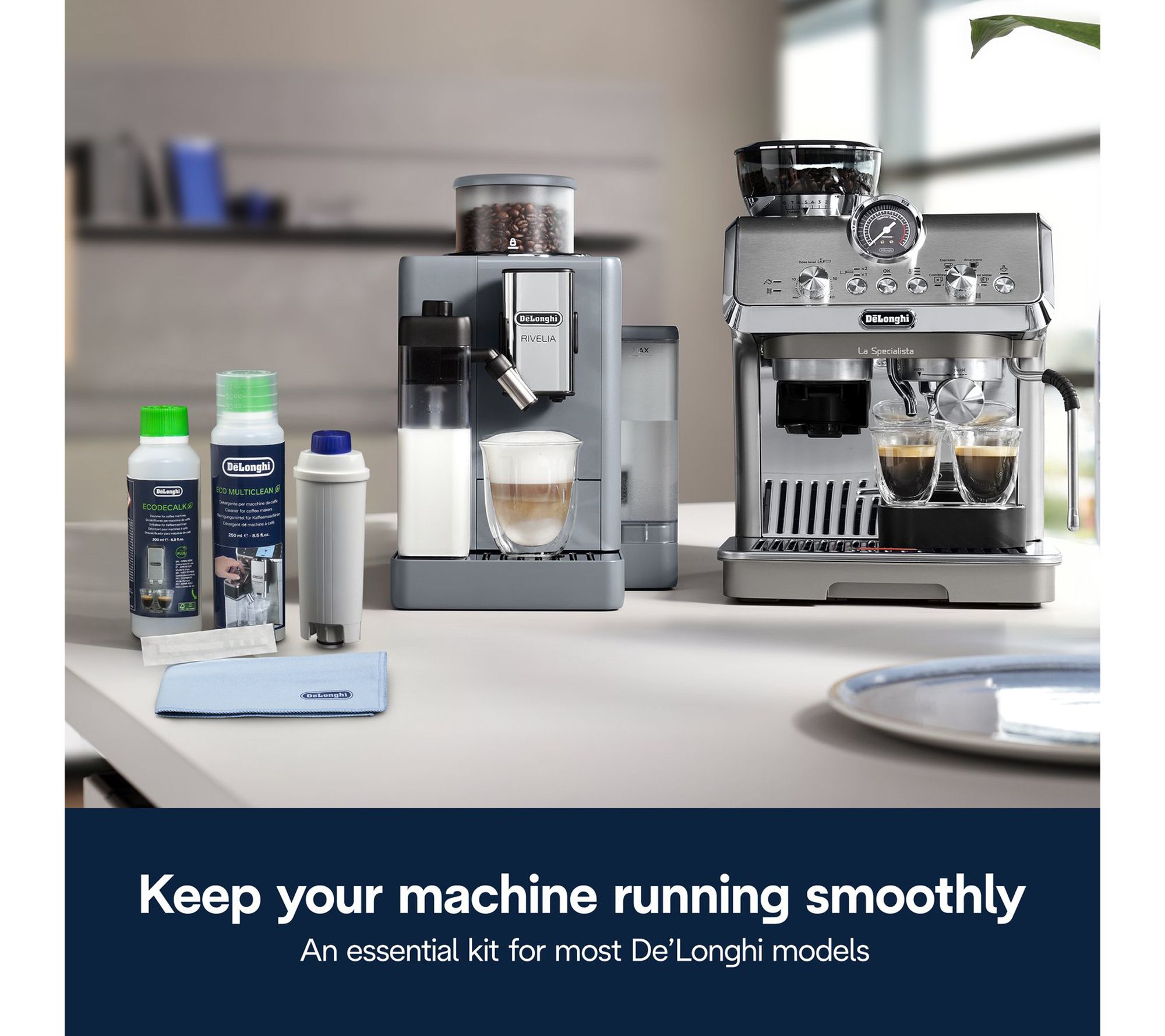 There's nothing like that first sip of smooth, full-flavored coffee from a well-cared-for espresso machine. With the De'Longhi Coffee Care Kit, routine maintenance becomes a breeze -- helping you enjoy delicious, consistent brews while protecting your machine from mineral buildup and wear. Keep your coffee ritual at its best, cup after cup. From De'Longhi.