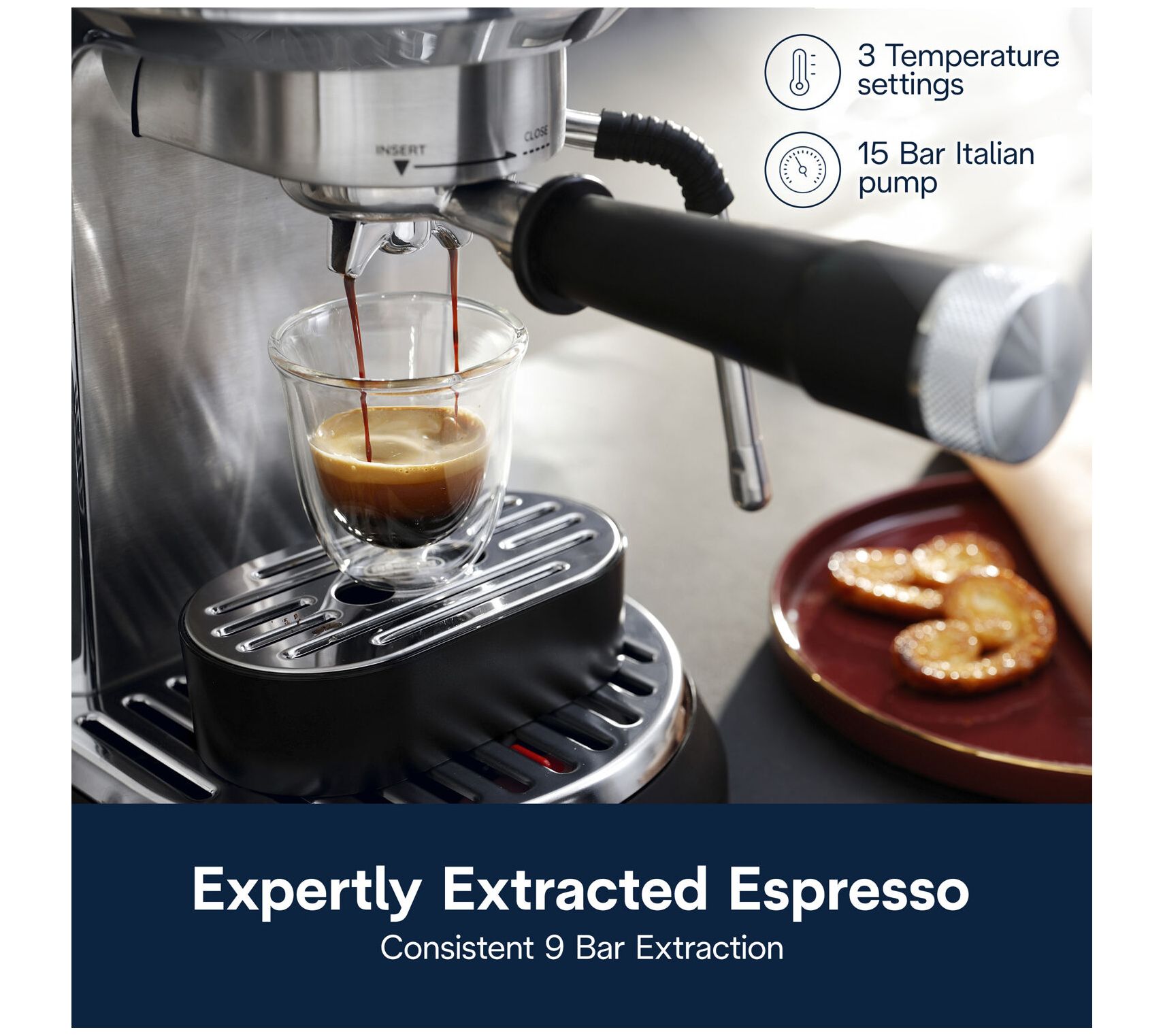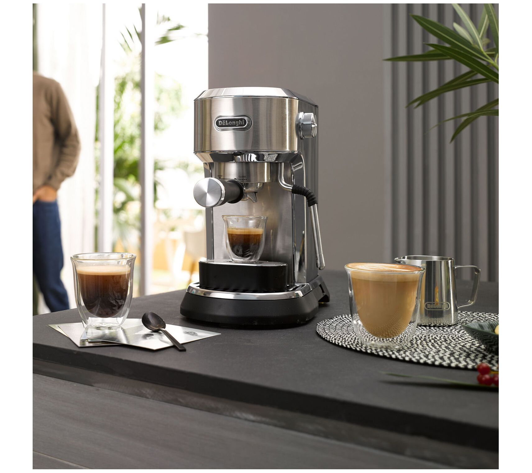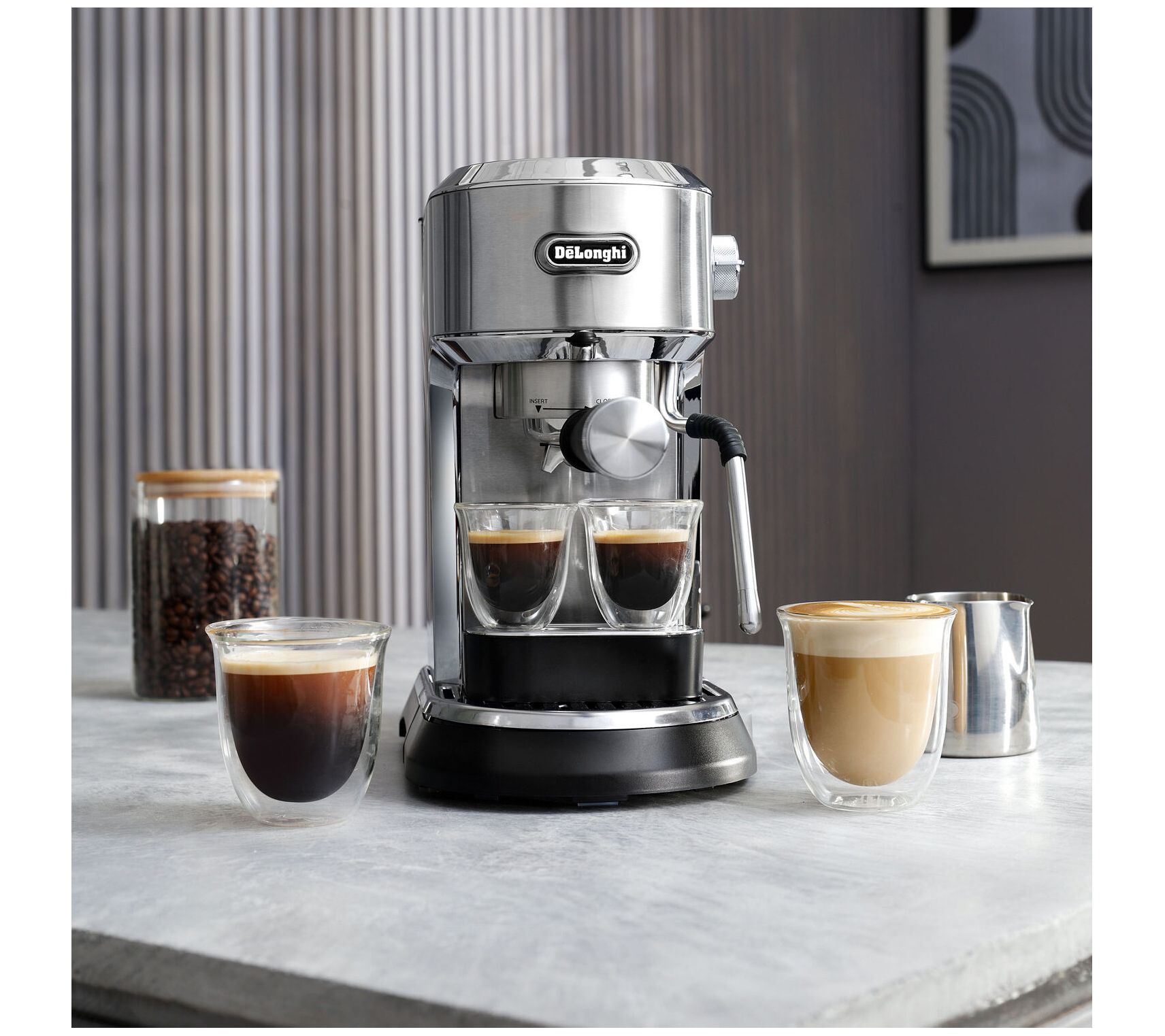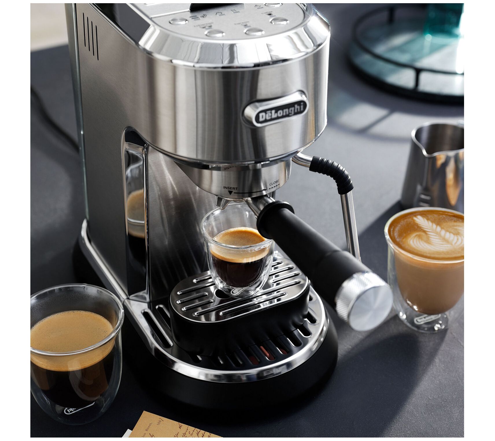 Wake up to rich, barista-quality espresso with the compact De'Longhi Dedica Maestro. This machine offers 15 bar pressure, three brewing temperatures, and a professional-grade steam wand for perfect lattes. Enjoy quick heat-up times and easy cleanup with its stainless steel finish. From De'Longhi.