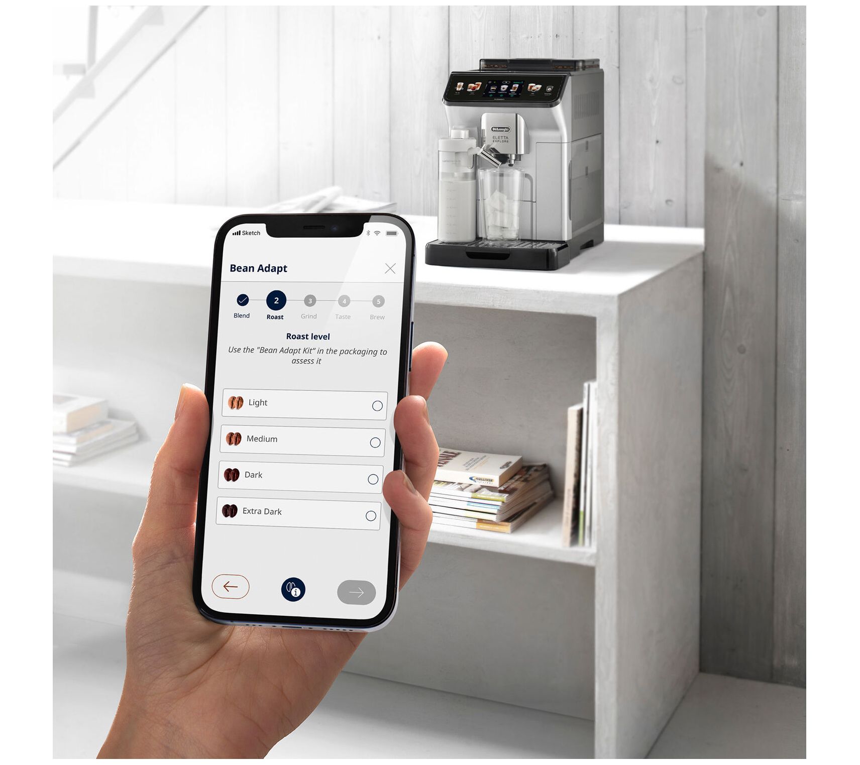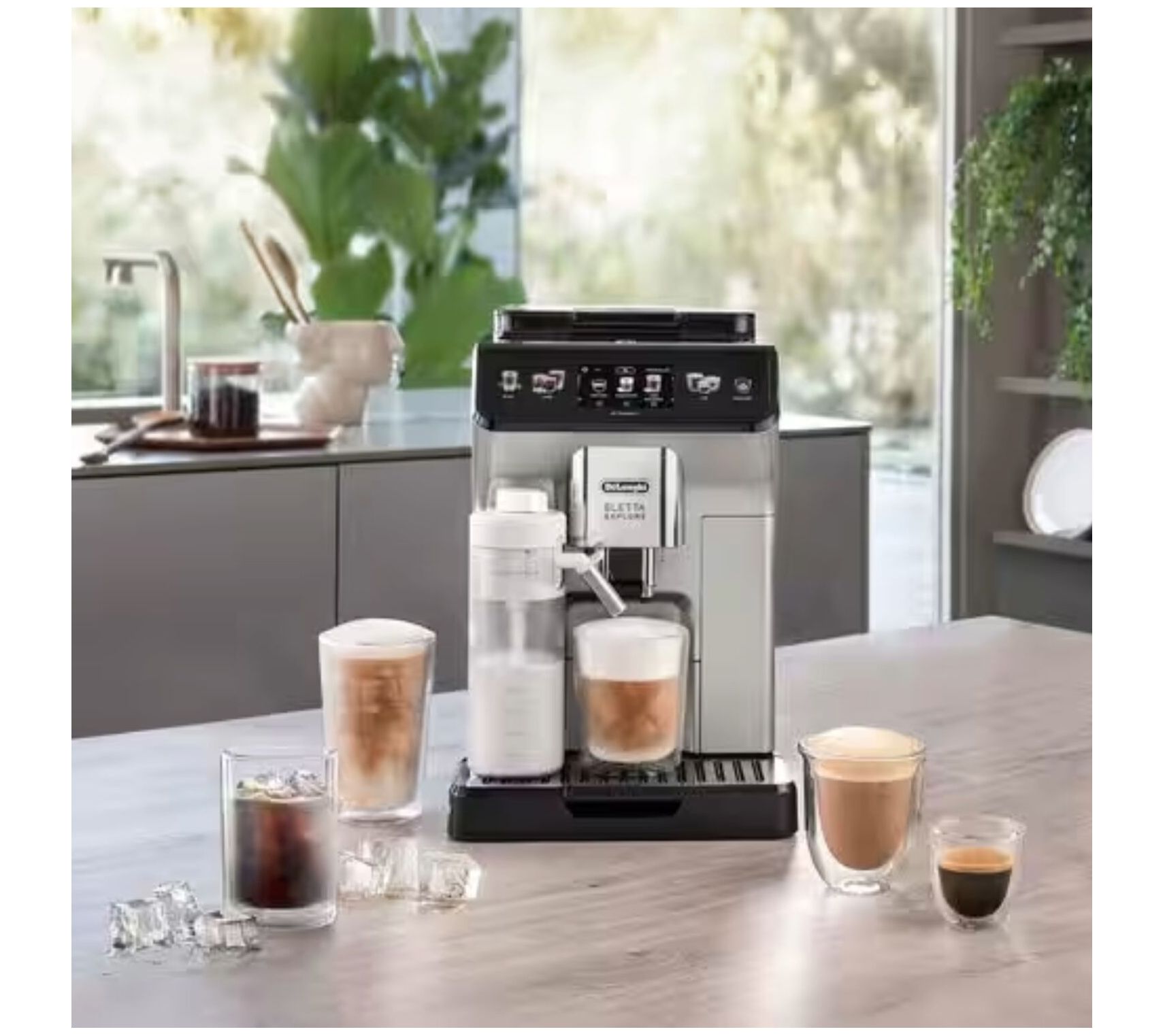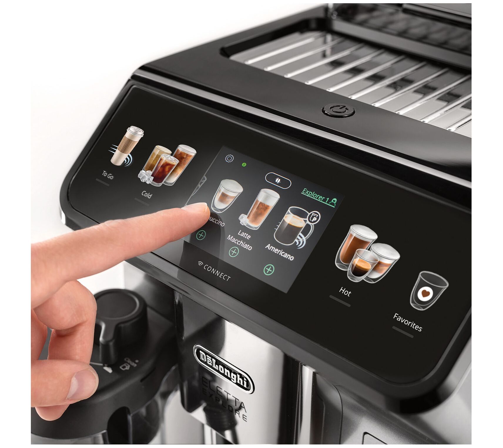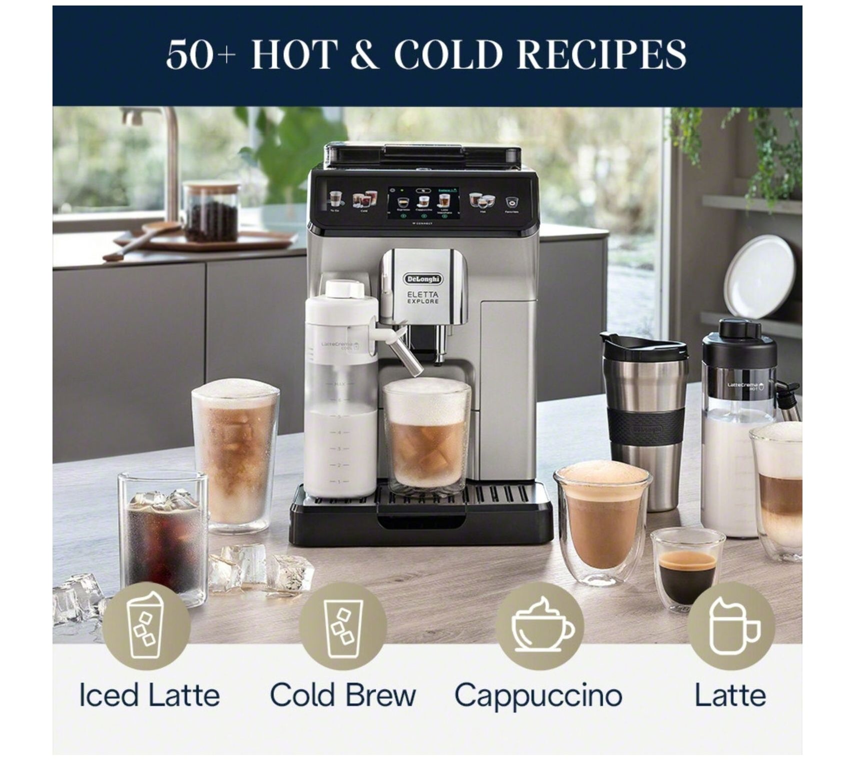 Explore endless possibilities with the De'Longhi Eletta Explore. This fully automatic espresso machine features both hot and cold foam technology, allowing you to craft your favorite espresso beverages and cold brews at home. The conical burr grinder offers 13 settings for freshly ground beans, and you can create over 50 recipes at the touch of a button. From De'Longhi.