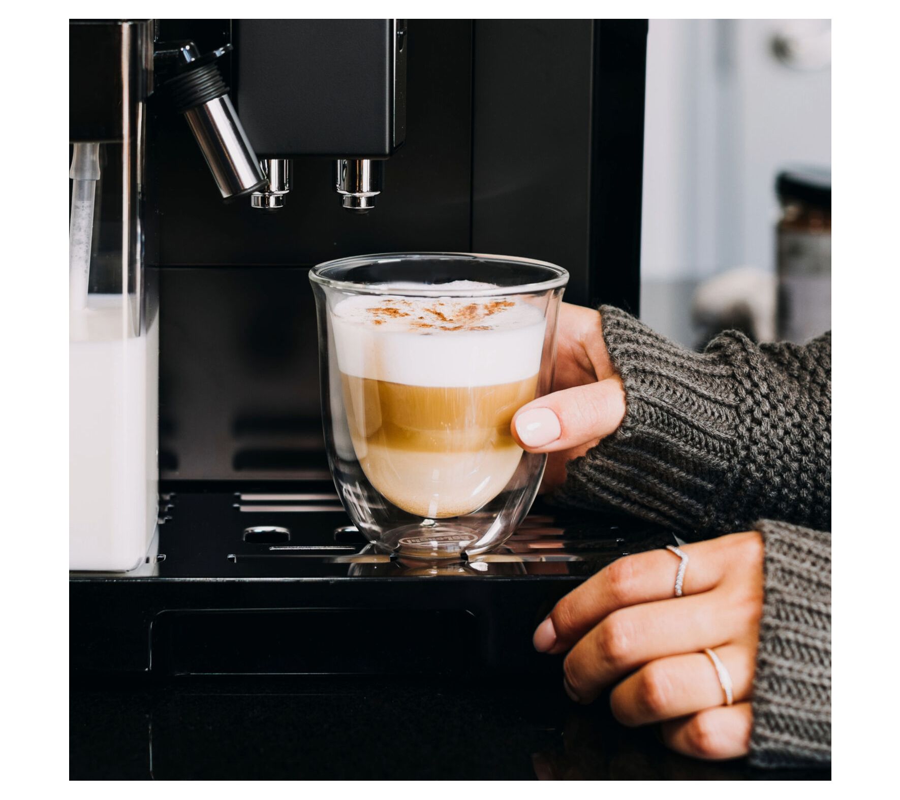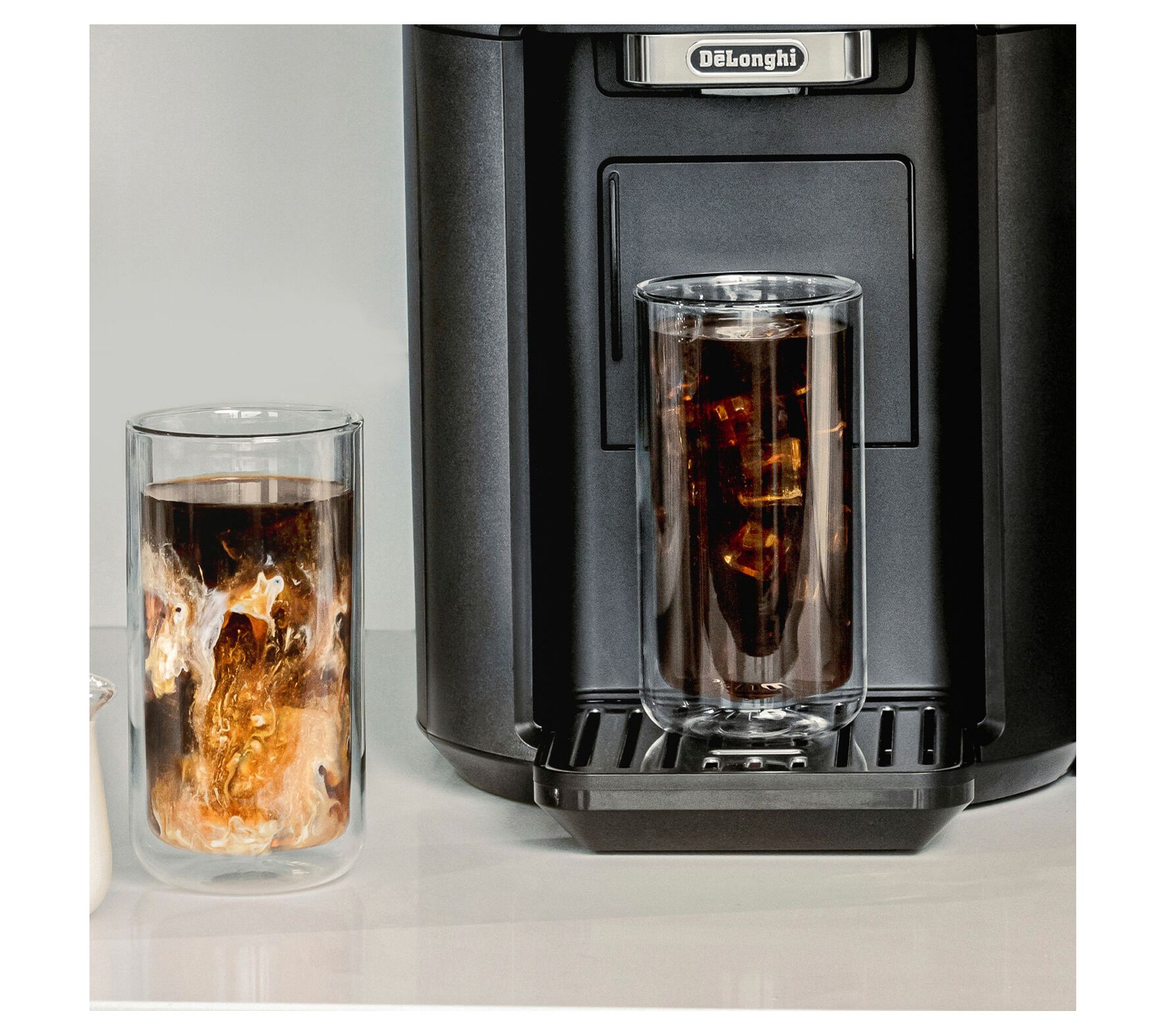 Crafted for those who appreciate the finer sips in life, this DeLonghi Hot & Cold Collection Trio Glass Set is your perfect companion. Whether you're cozying up with a cappuccino, enjoying a refreshing cold brew, or relishing a chilled beverage, these glasses offer a versatile solution for any drink. Each piece is designed to enhance your drinking experience, with thermal double-wall glass construction to maintain optimal temperatures. From De'Longhi.