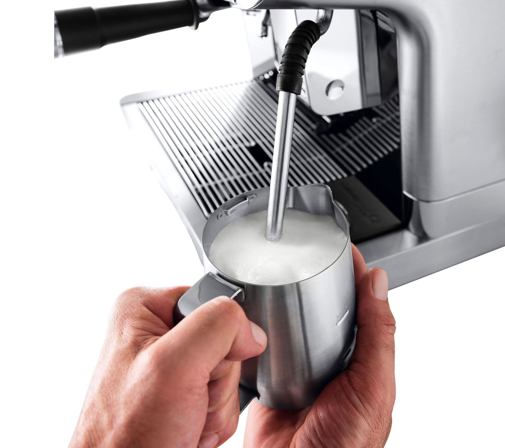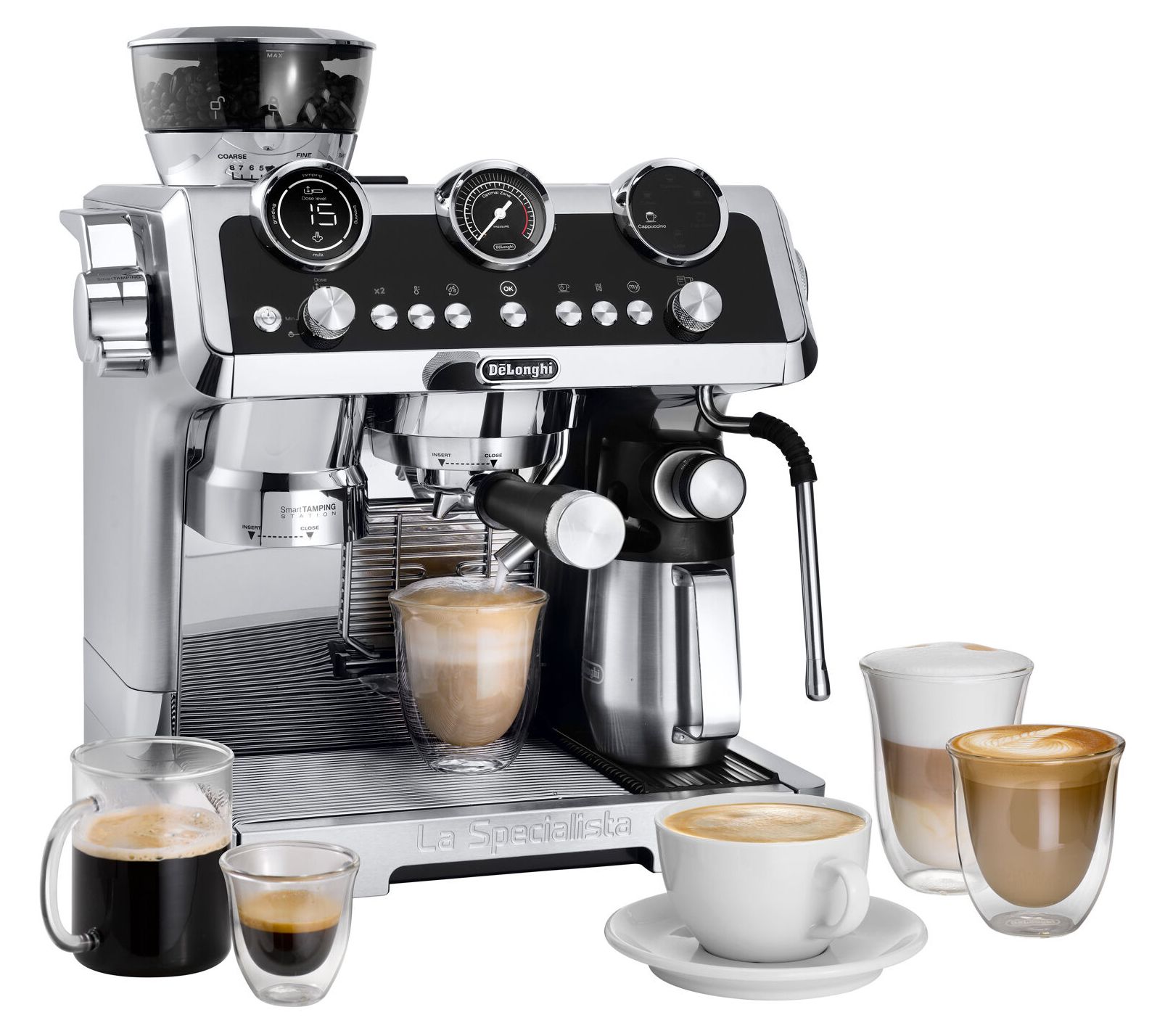 Be your own talented barista with the La Specialista Maestro espresso machine, with a powerful steam wand that enables you to reach the optimal texture to experiment with your own latte art, an integrated grinder, eight grind settings, and an active temperature control that offers five infusion profile settings. From De'Longhi.
