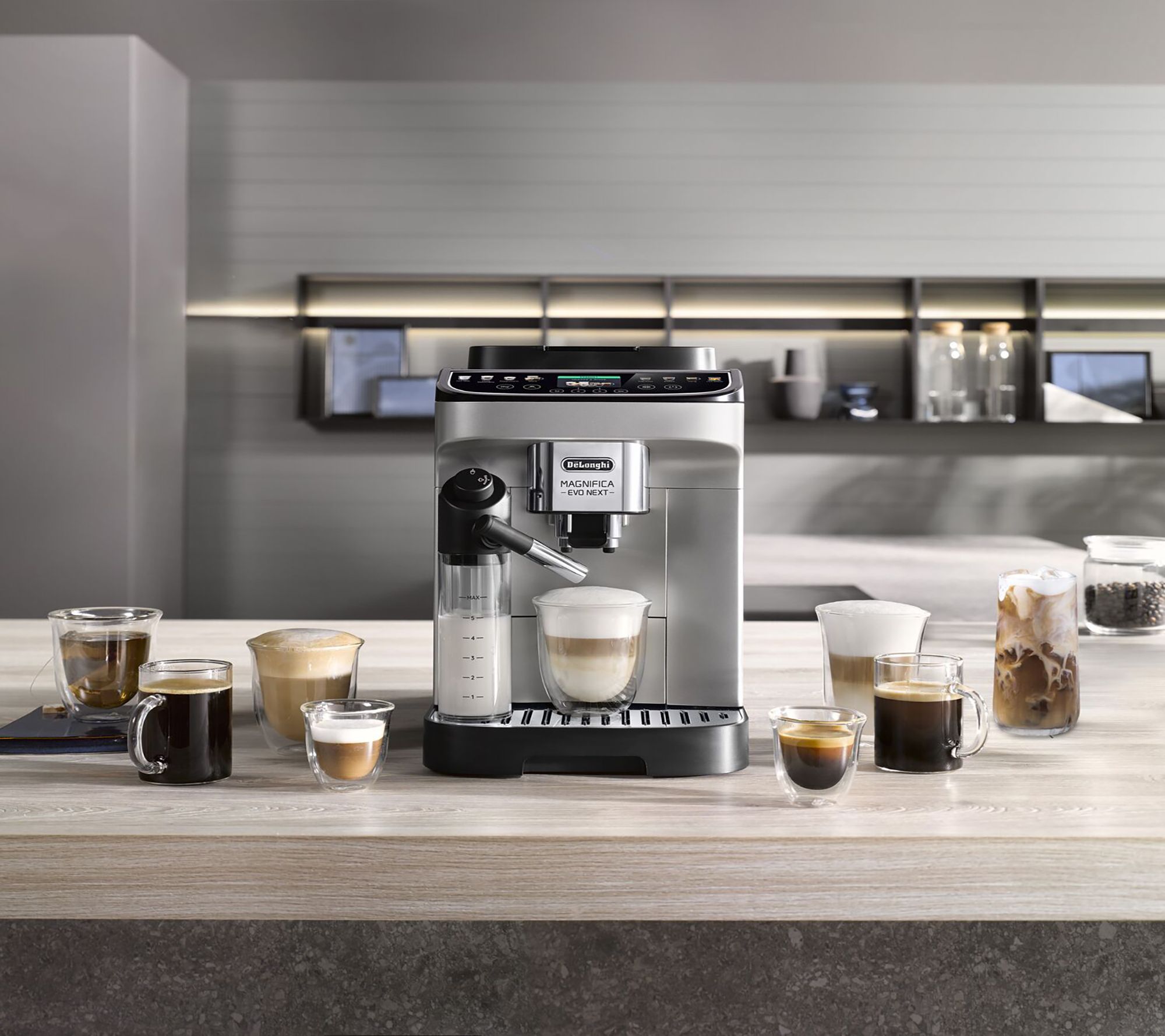 Wake up to the aroma of cafe-style coffee right from your kitchen as the Magnifica EVO Next Espresso Machine transforms beans into barista-worthy creations with the push of a button. Savor single-serve drinks customized to your taste, whether you're craving a bold espresso or a luxuriously creamy cappuccino. With an intuitive display and recipe variety, every morning feels like a treat. From De'Longhi.