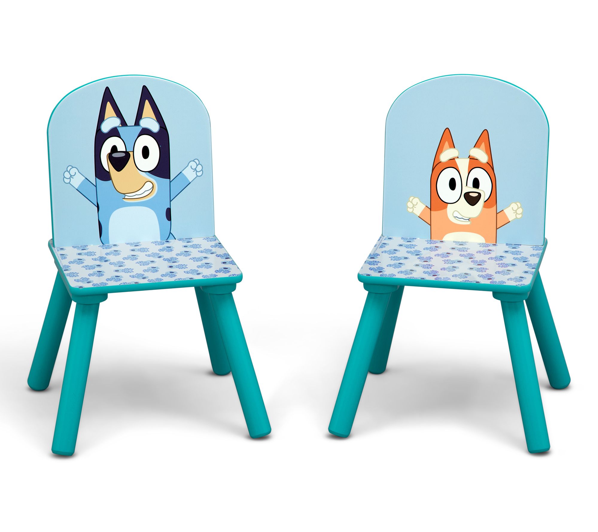 Create the perfect playtime setting with the Delta Children Bluey kids table and chair set. Featuring colorful graphics of Bluey and Bingo, this set is both fun and functional with a handy toy storage compartment in the table. From Delta Children.