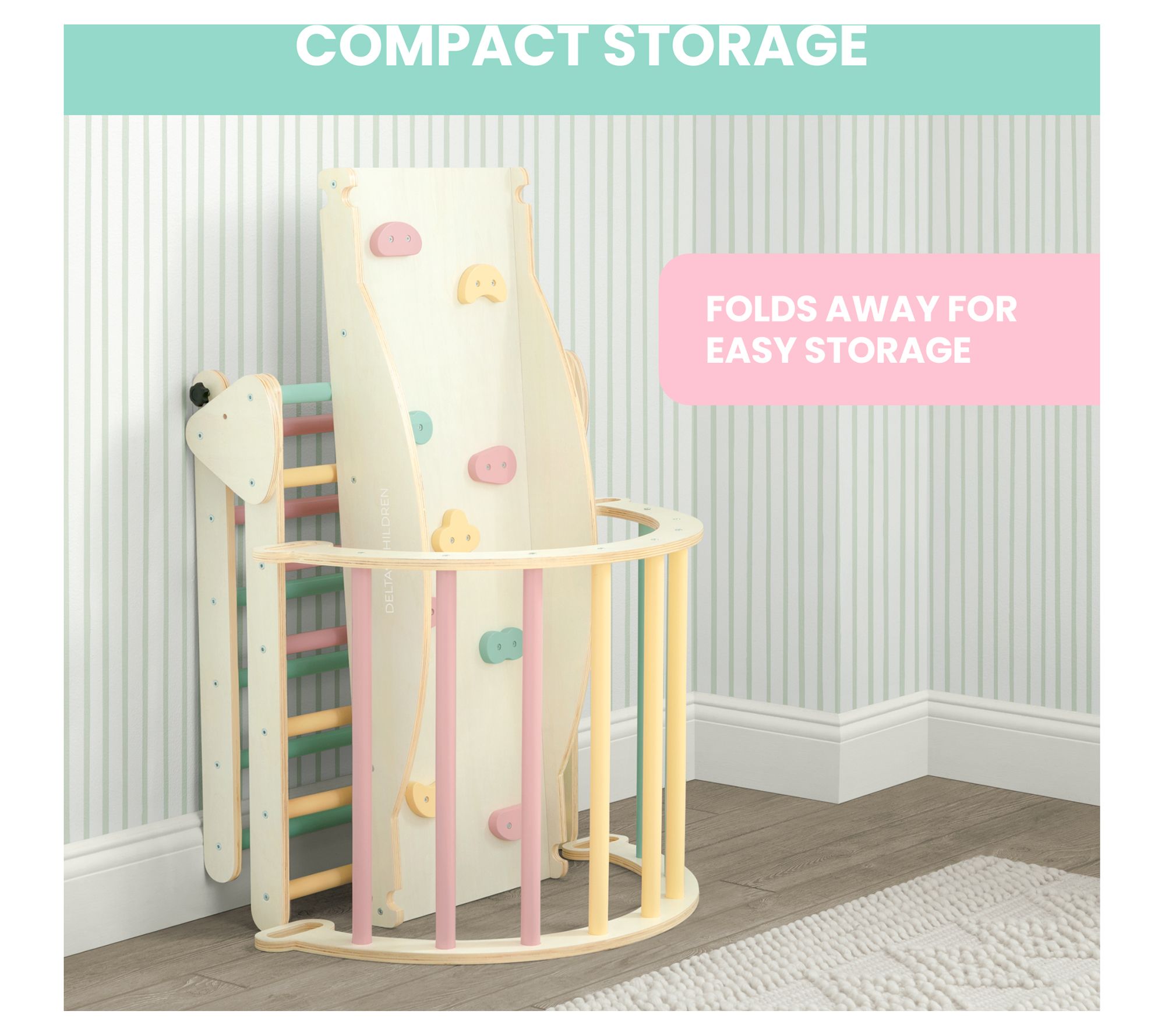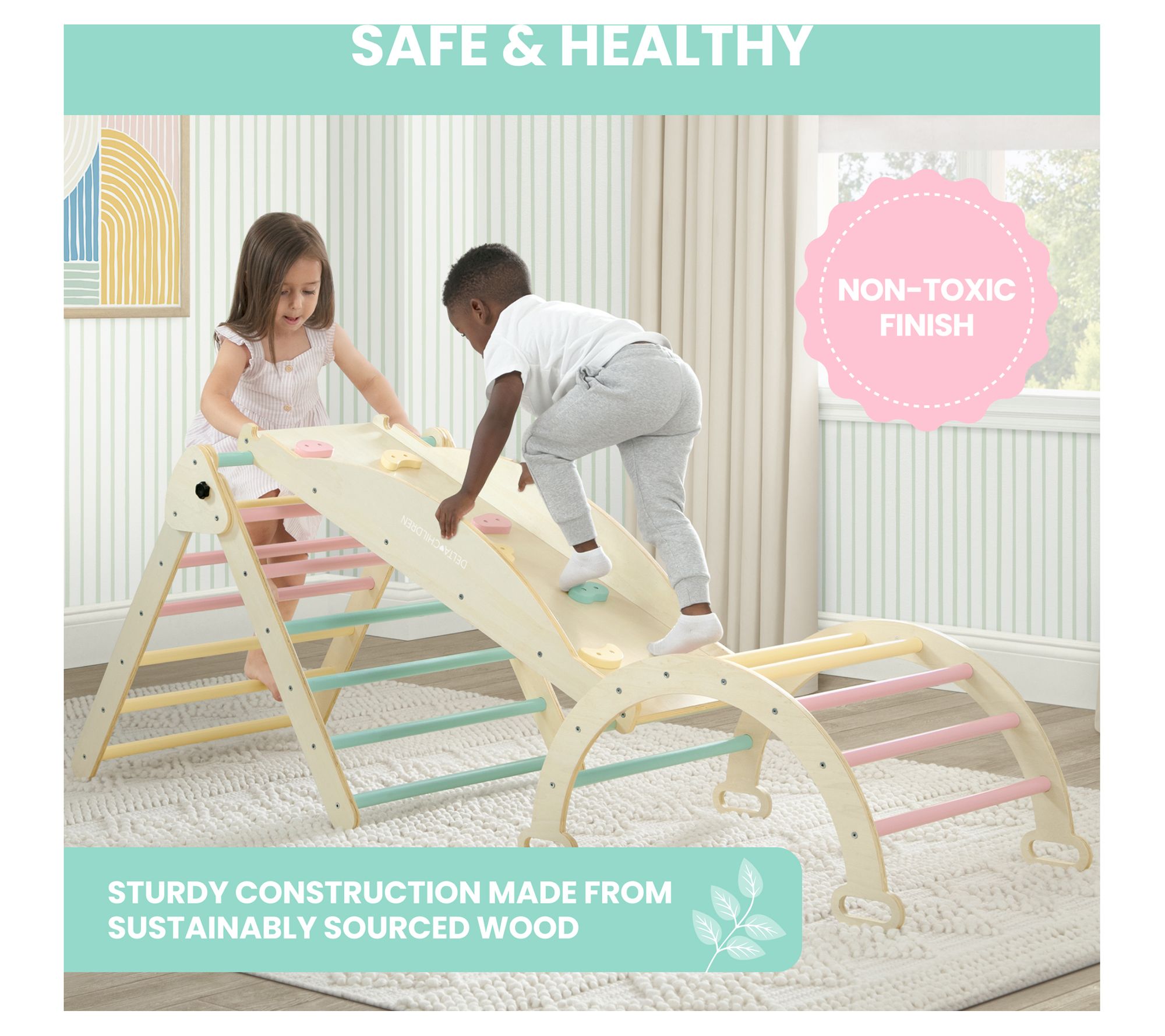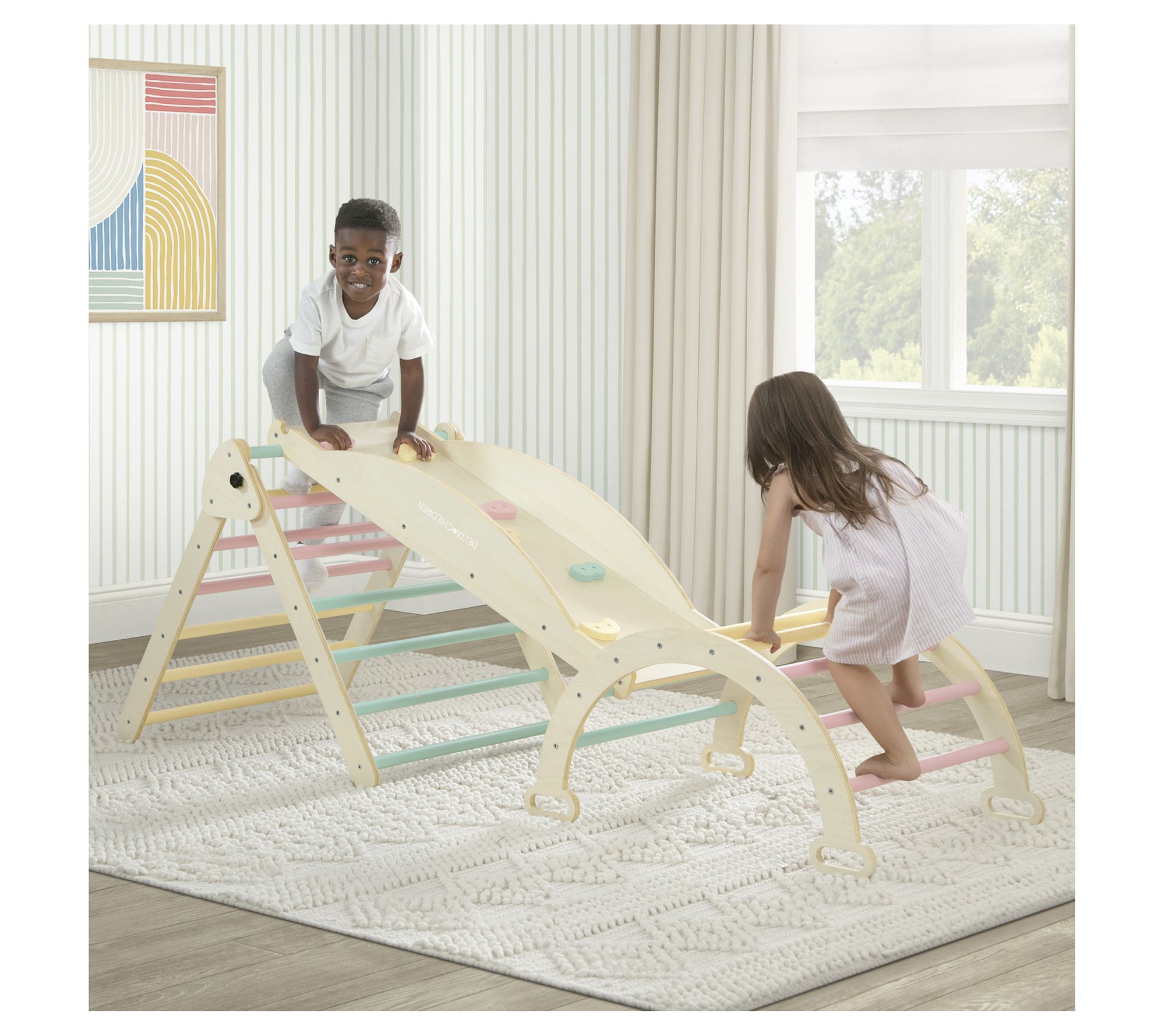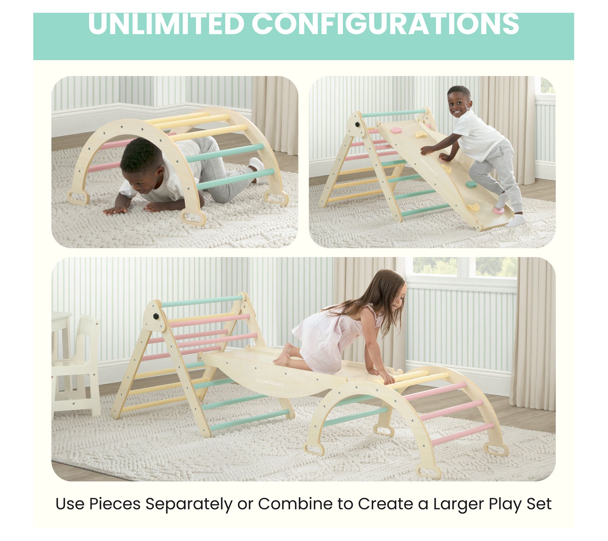 Elevate your child's playtime with the Delta Children Lil Climber Gym. With limitless configurations, this versatile play structure promotes motor skills, creativity, and natural fun. From Delta Children.