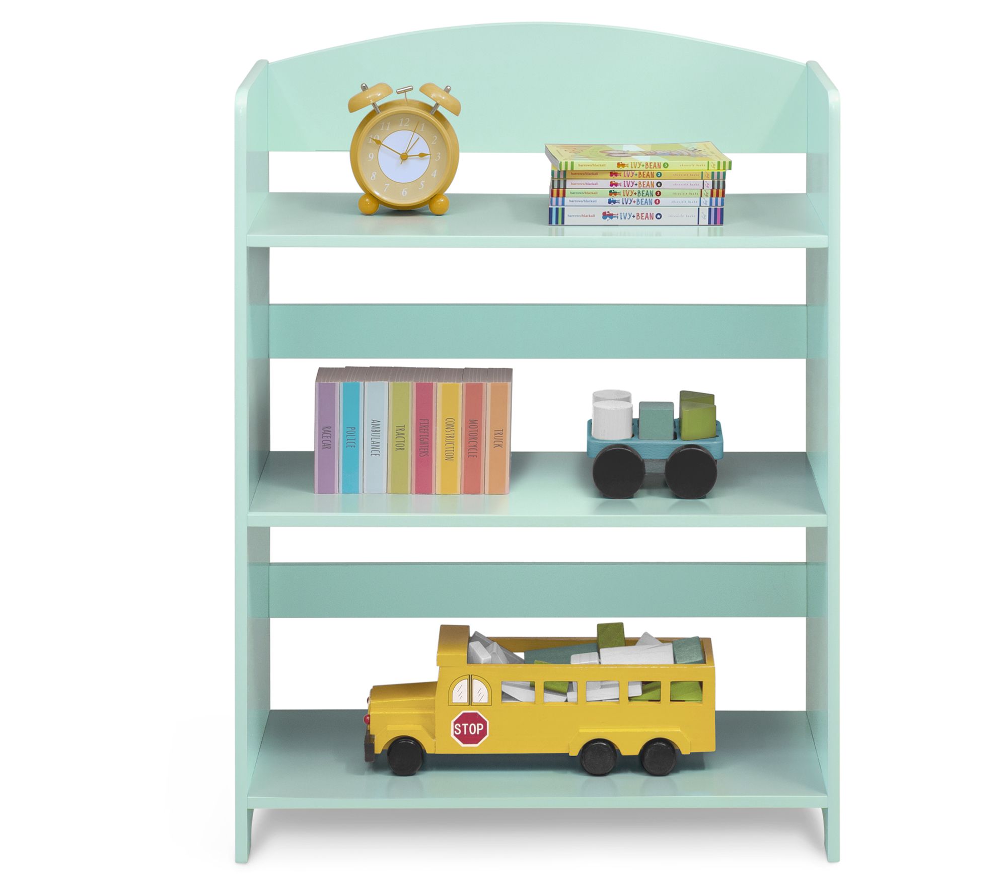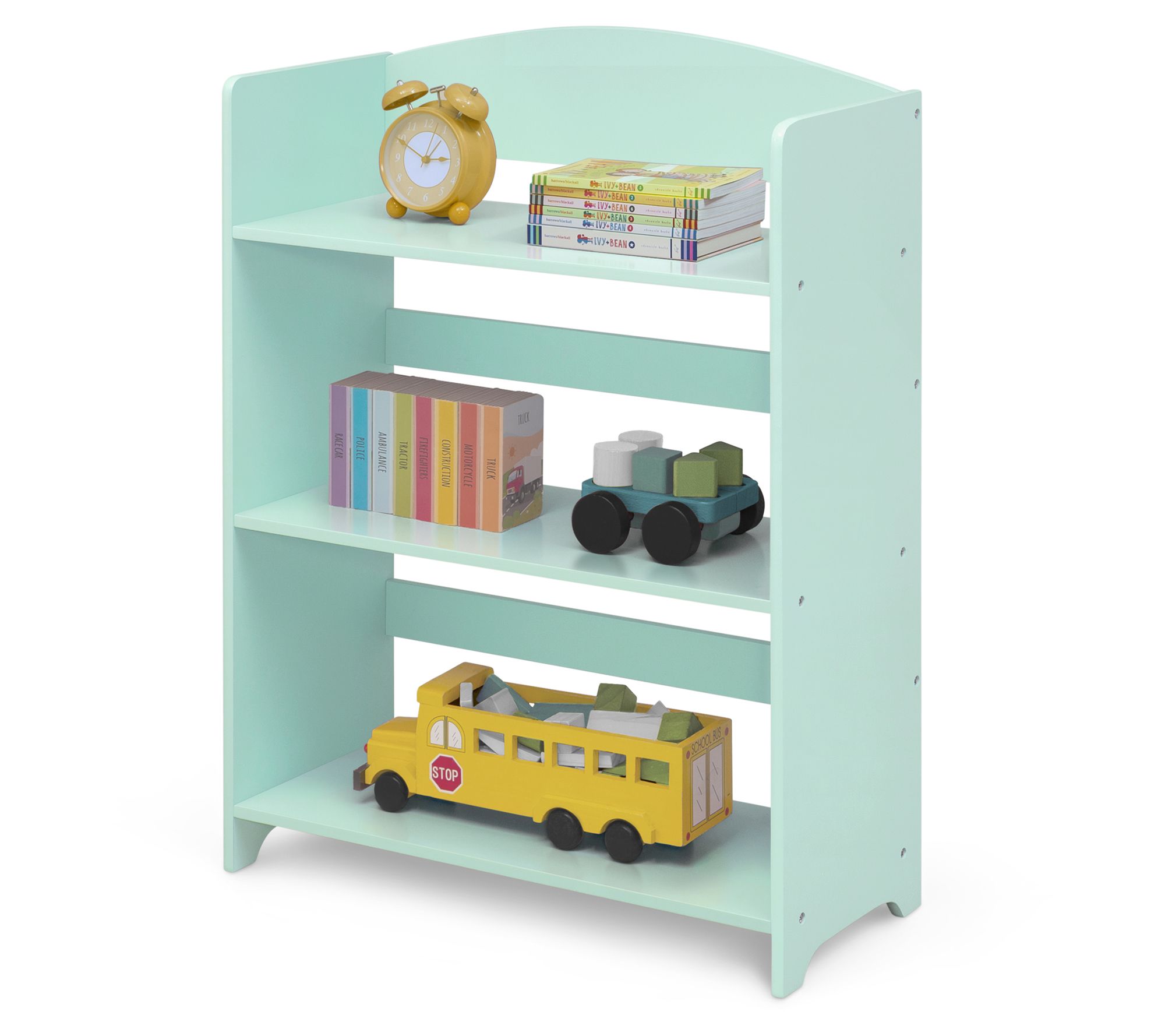 Help your little reader organize their growing book collection with the MySize bookshelf, featuring sturdy wood construction, fun allover color, and three open shelves at the perfect kid-sized height. From Delta Children.