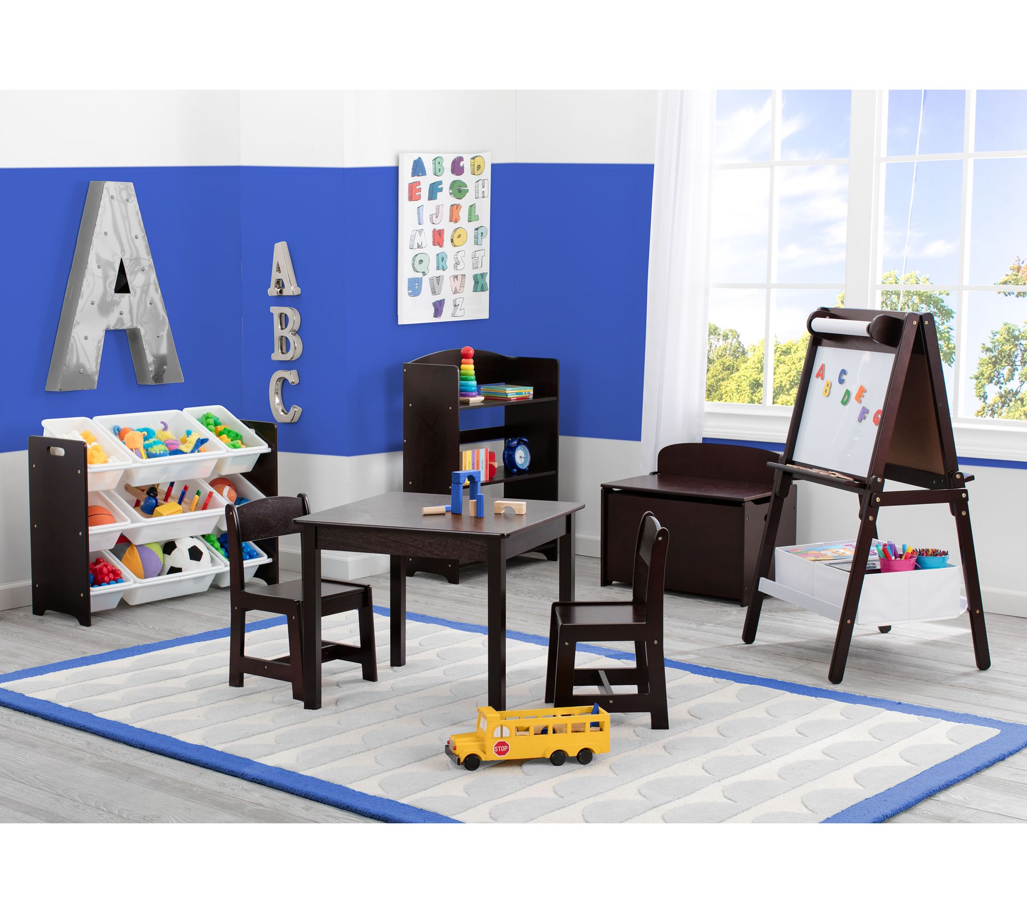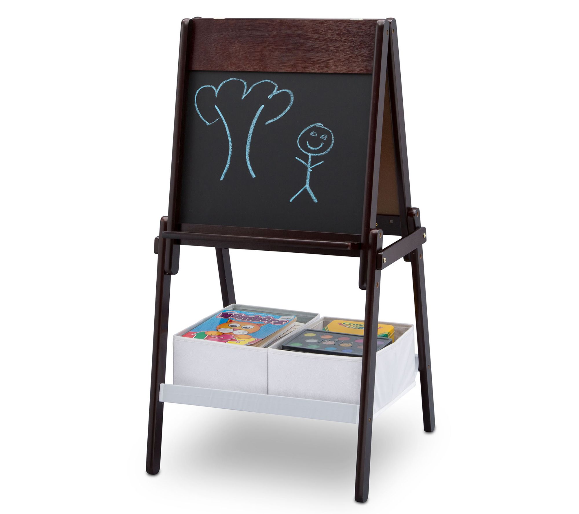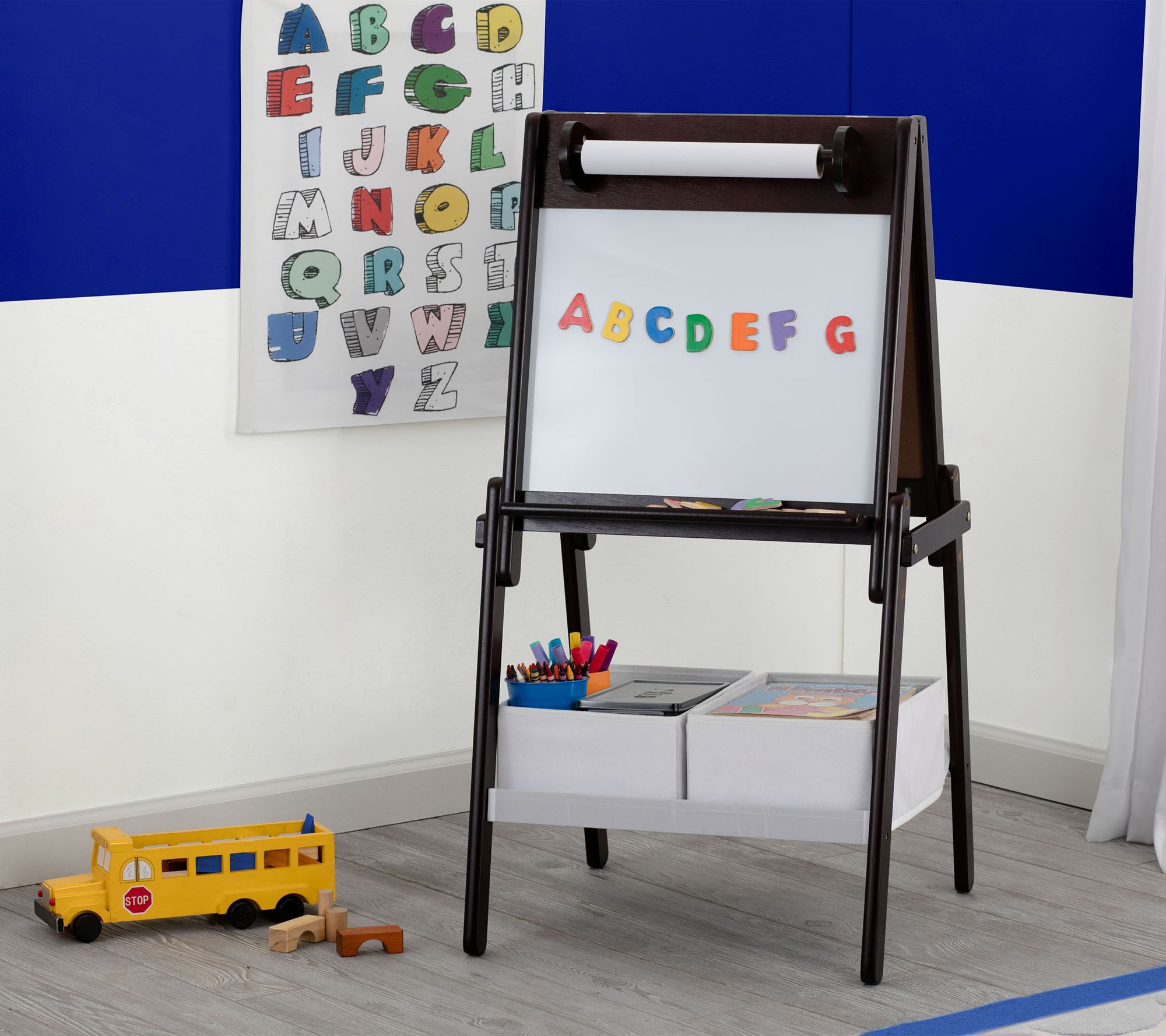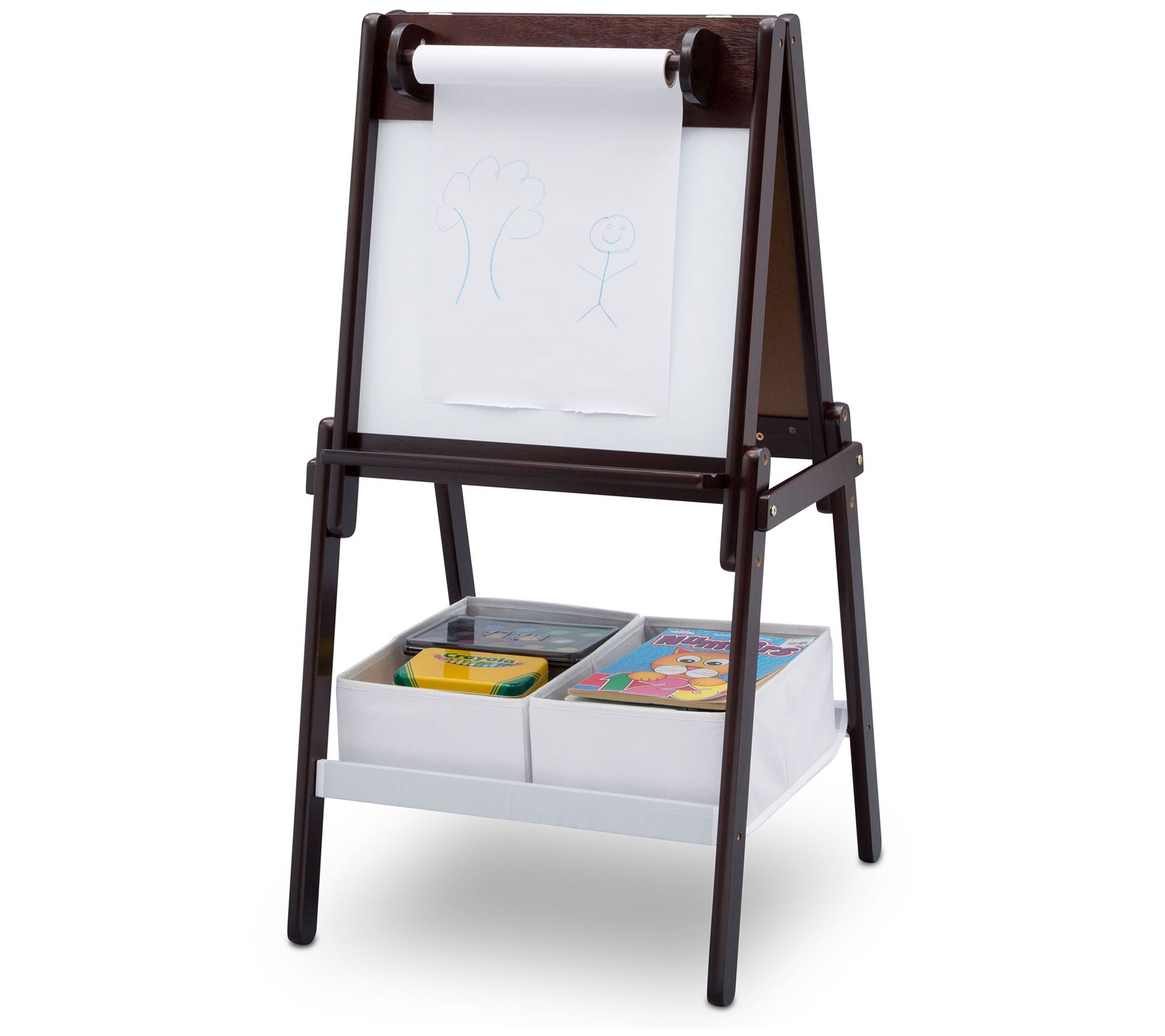 Give your budding artist the perfect canvas for expressing their imagination with this dual-side easel featuring a chalkboard and a dry-erase board. Storage bins in the base let you tuck away arts and craft supplies. From Delta Children.