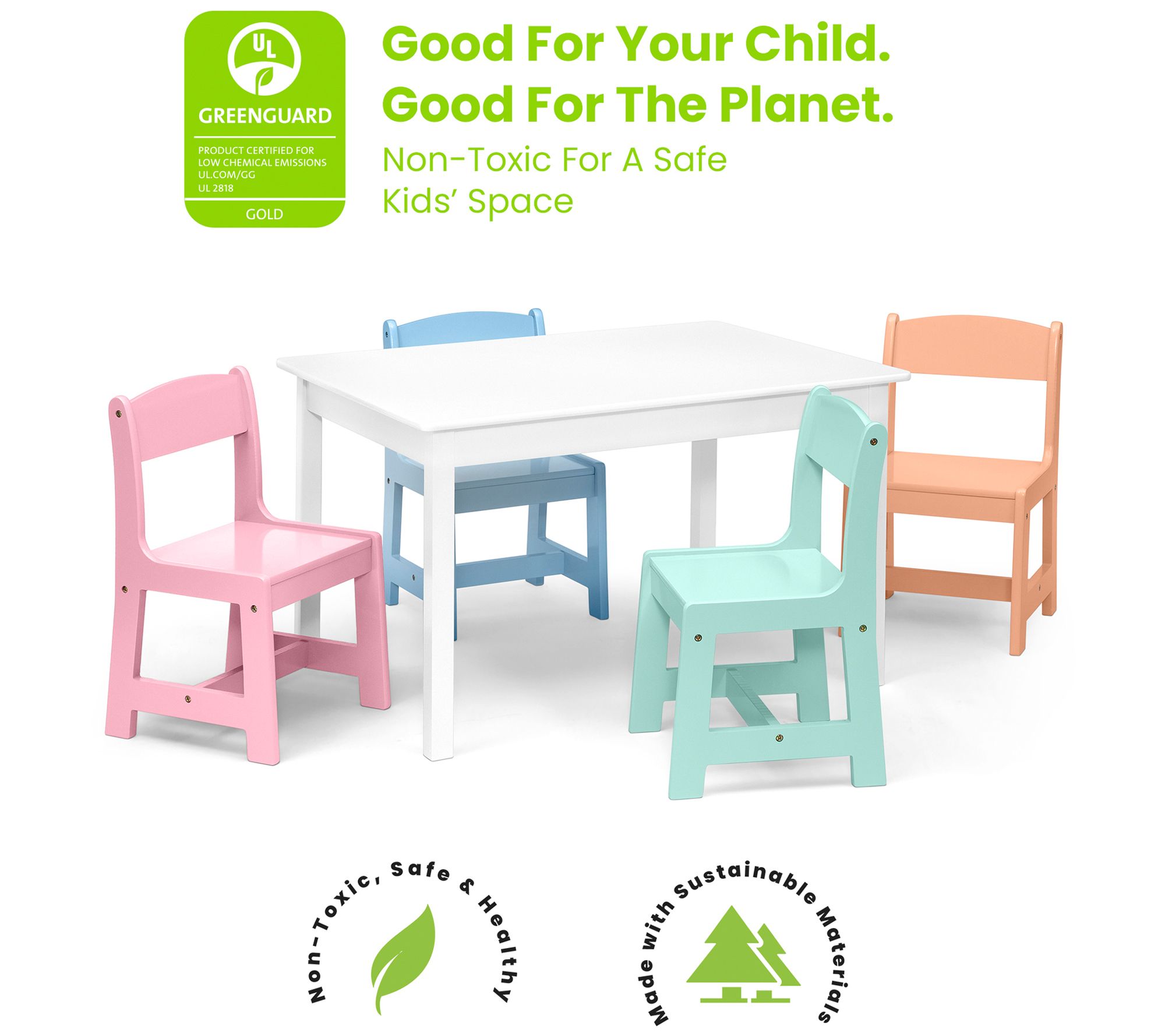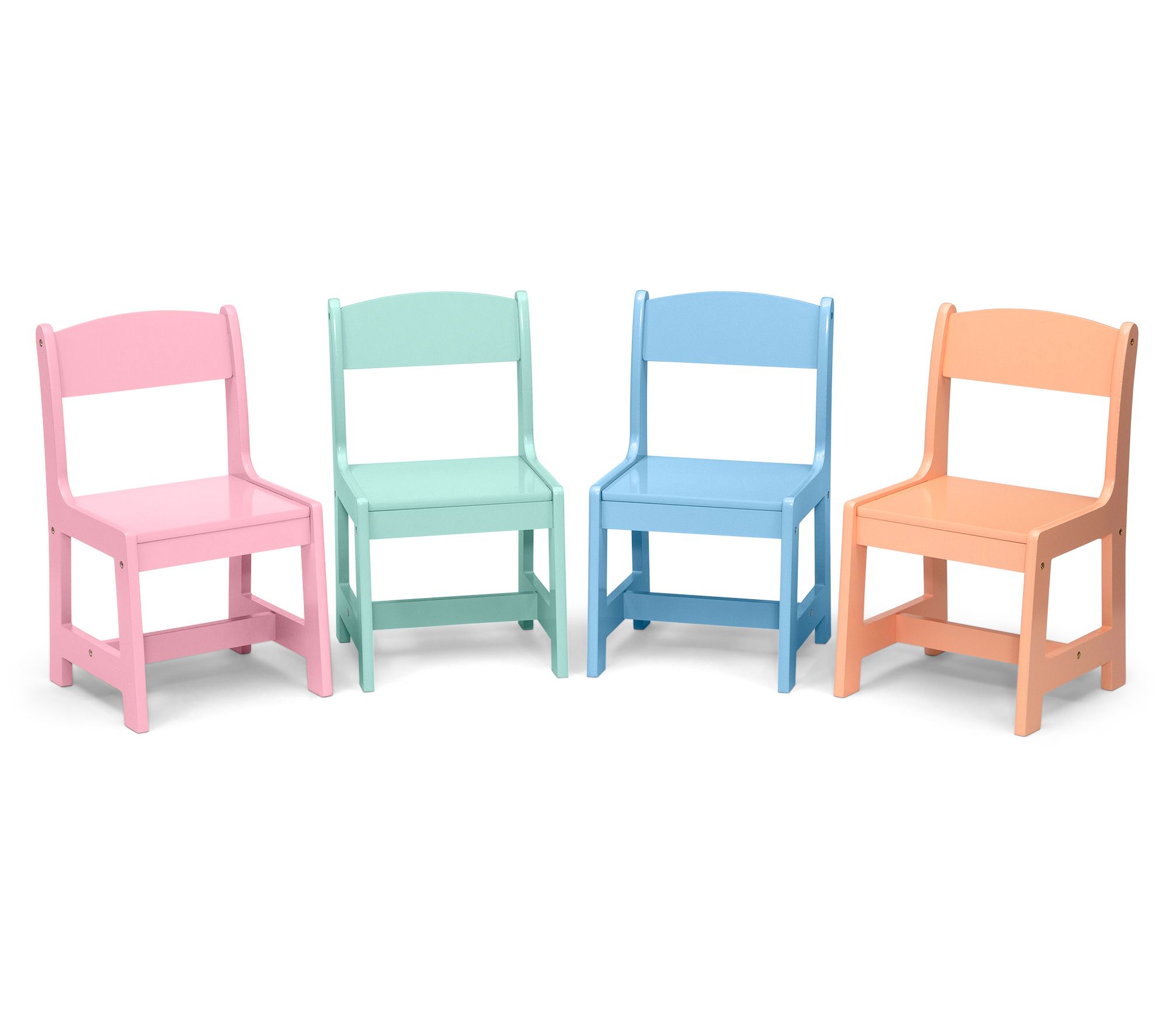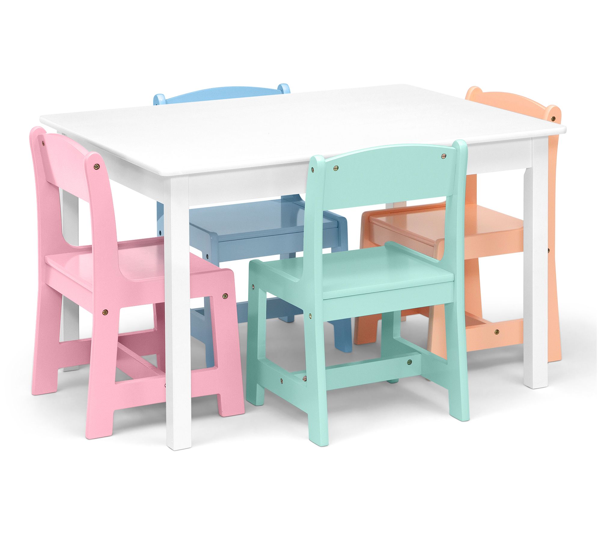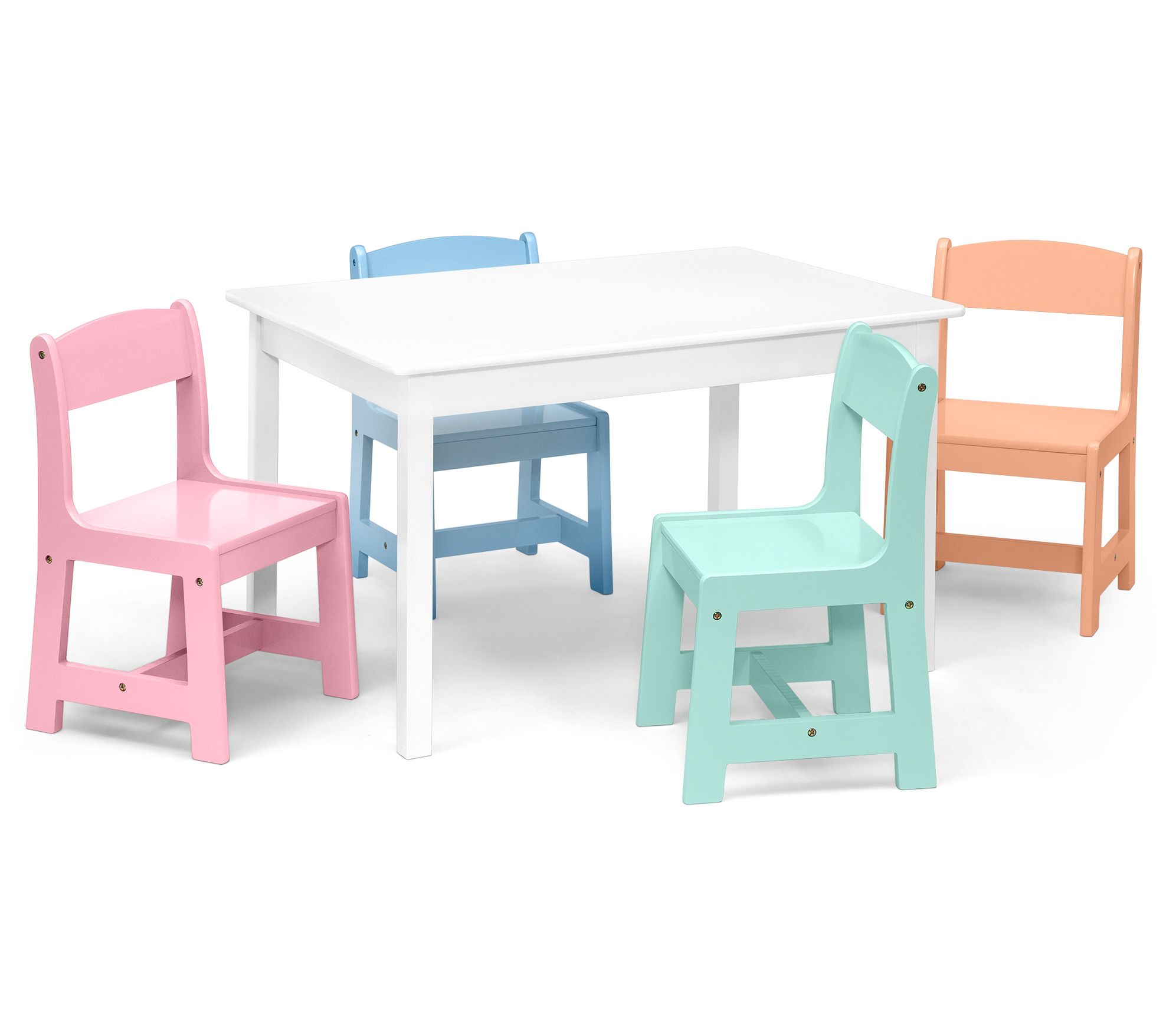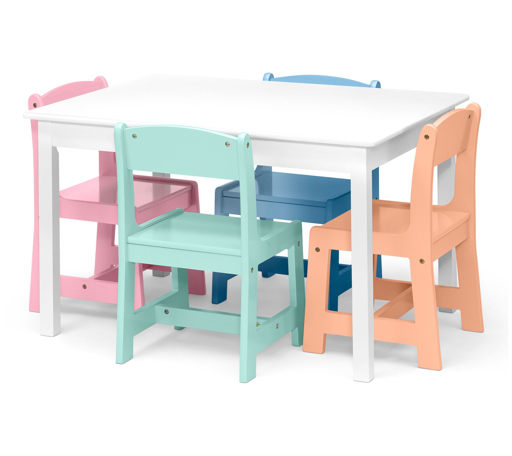 Bring a dash of fun to your little one's playroom with this kid-sized table accompanied by a set of colorful chairs. From Delta Children.