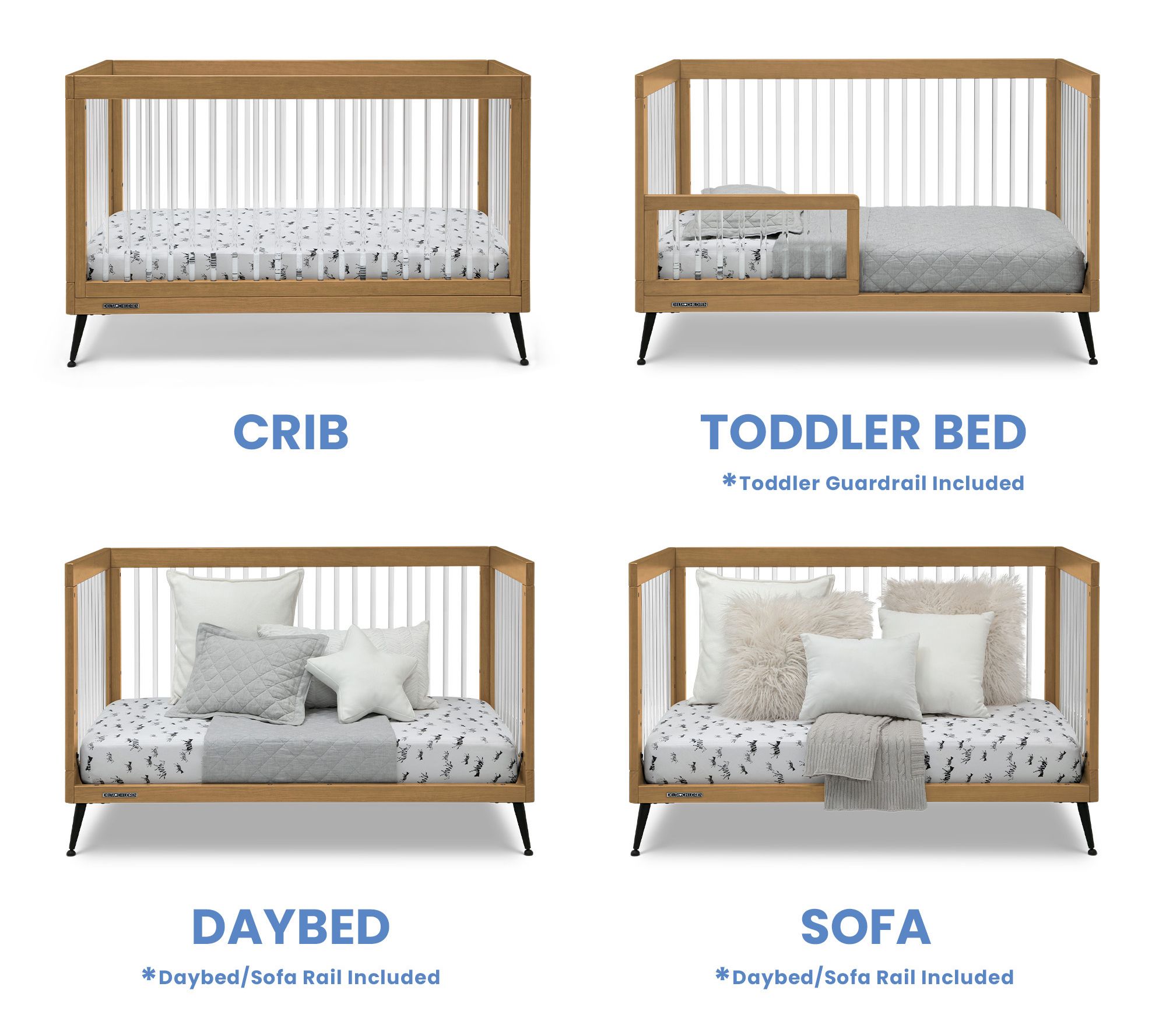 Drift off to sleep surrounded by the stylish versatility of the Delta Children Sloane 4-in-1 Acrylic Convertible Crib. With its sleek design and adjustable mattress support, this crib transitions with your baby from infancy to toddlerhood and beyond. From Delta Children.
