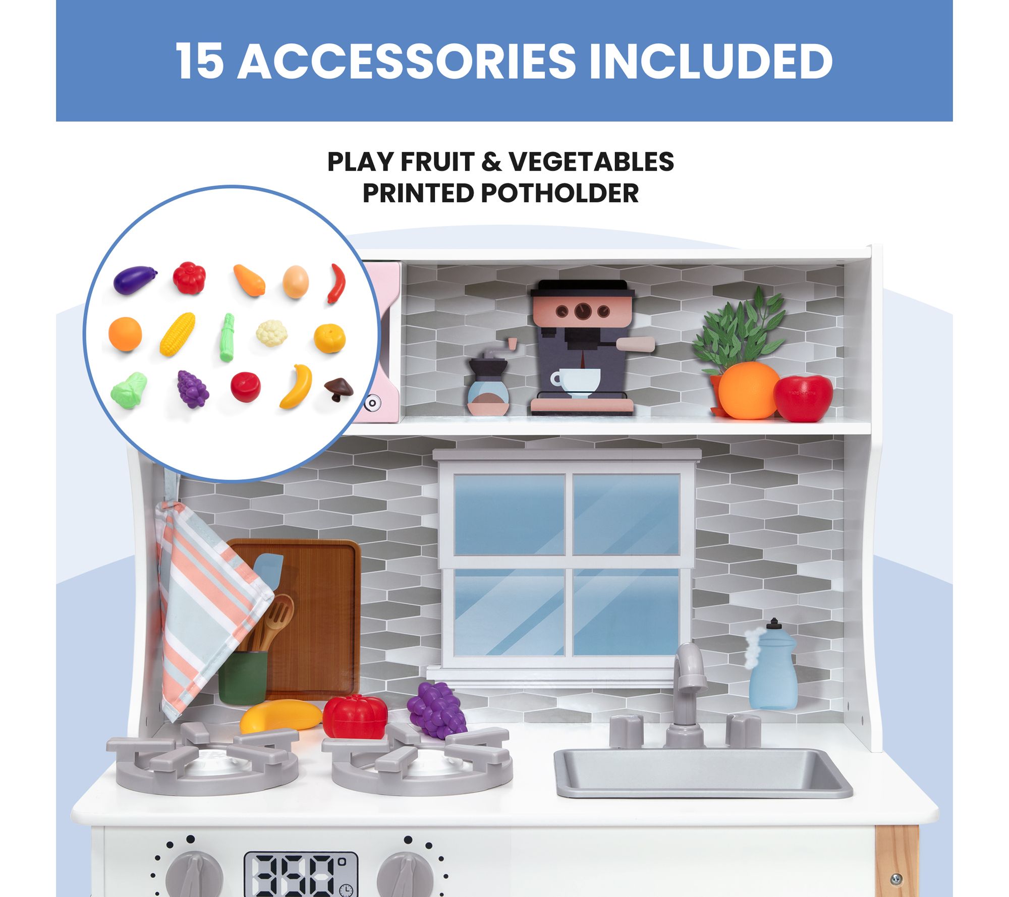 • Includes kitchen and 15 accessories