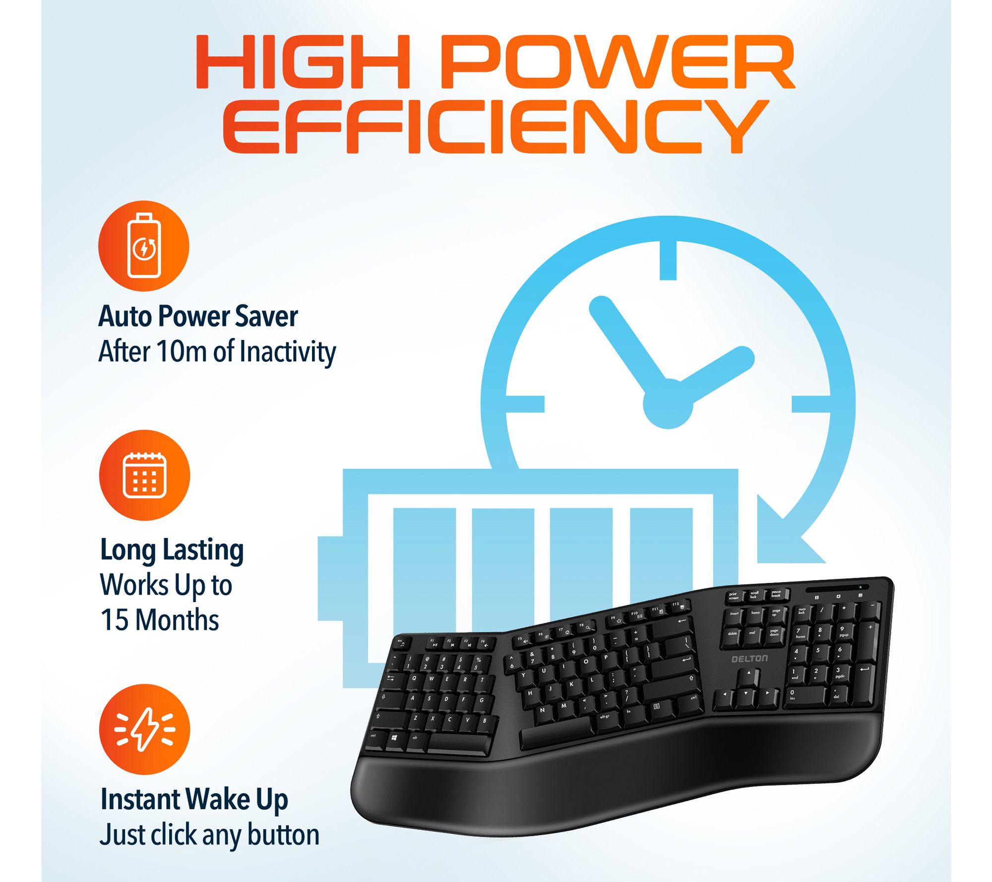 The Delton G20 ergonomic wireless keyboard and optical mouse combo is your perfect companion for long workdays or typing sessions. Enjoy maximum comfort and reduced wrist strain with the pillowed wrist rest and vertical mouse design, promoting better posture and a more natural hand position. With seamless connectivity for multiple devices and noiseless operation, you can work efficiently and comfortably all day long. From Delton.